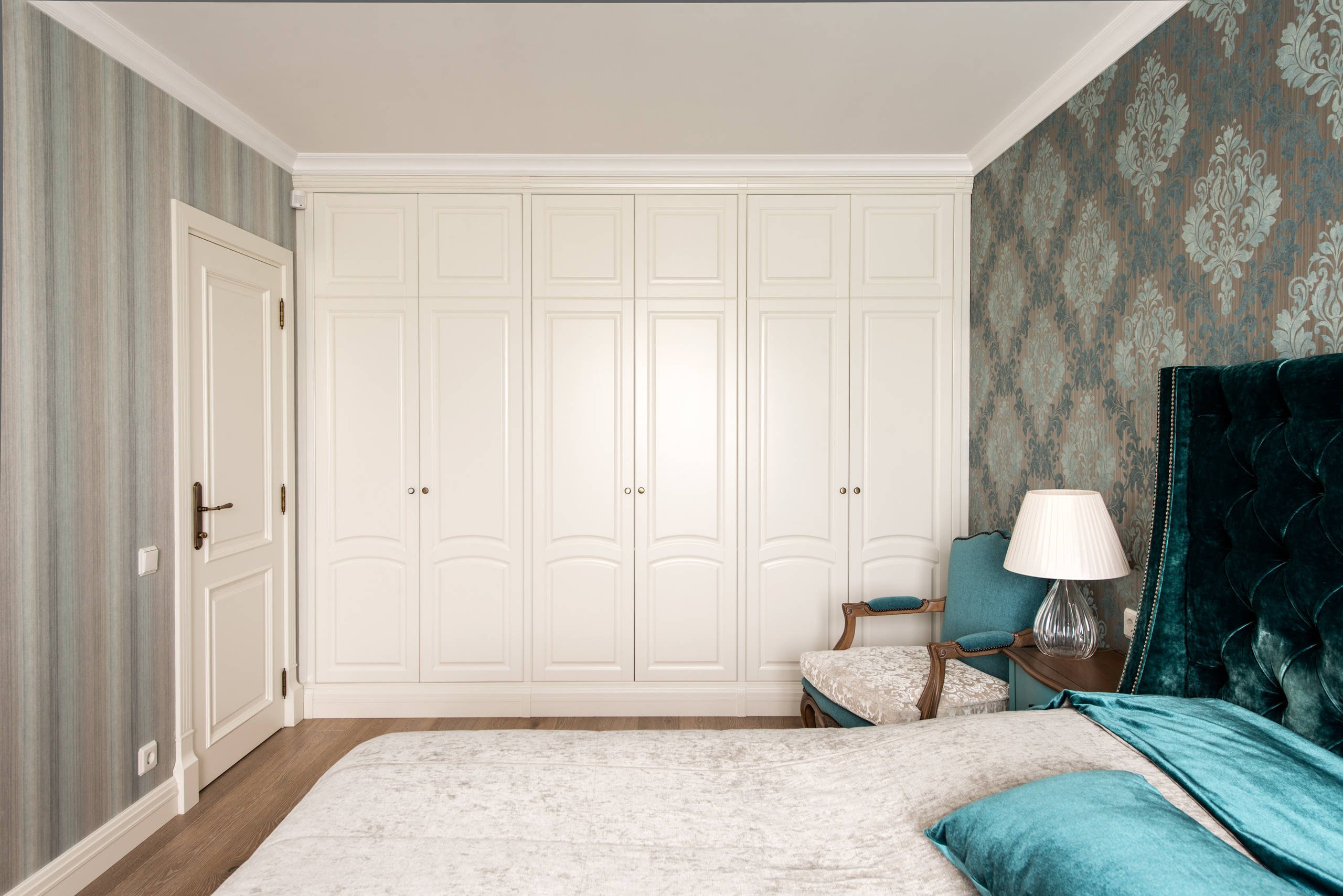Встроенный шкаф вокруг двери в спальне