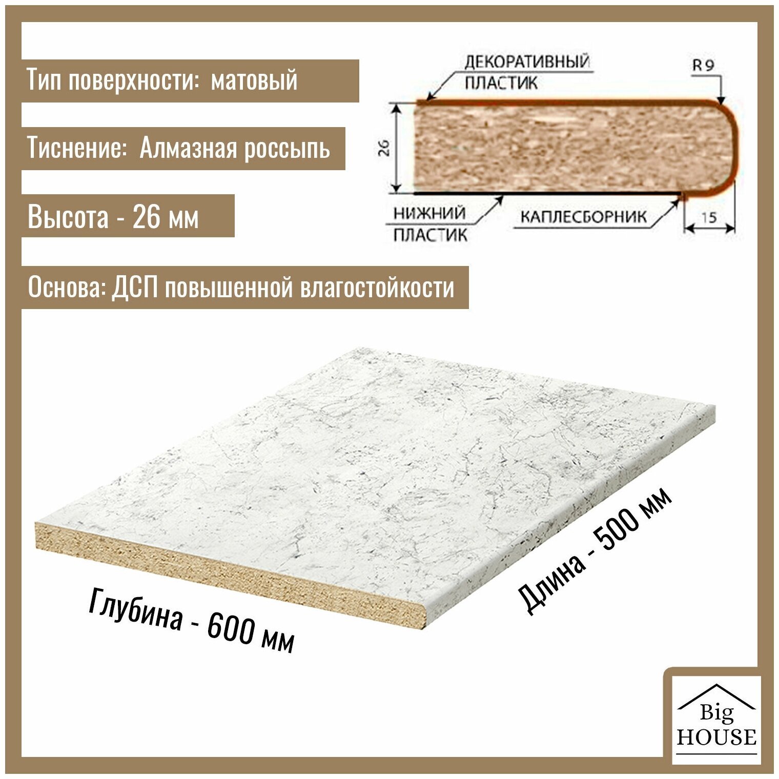 Кухонная столешница Скиф белый бриллиант 60х180 см ЛДСП цвет белый