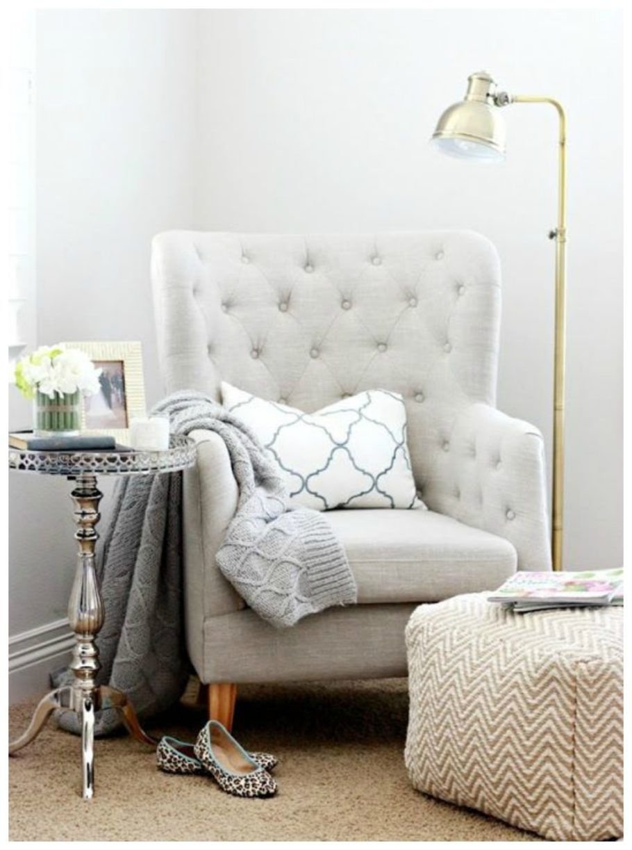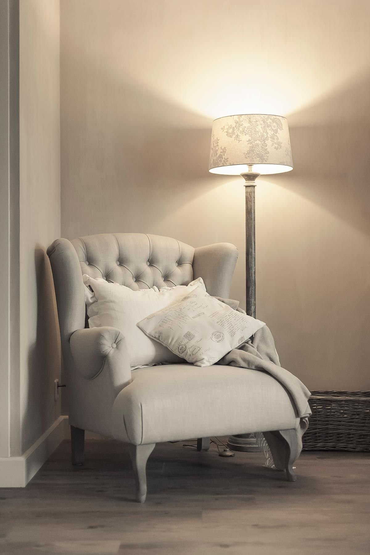 Кресло с торшером в спальне