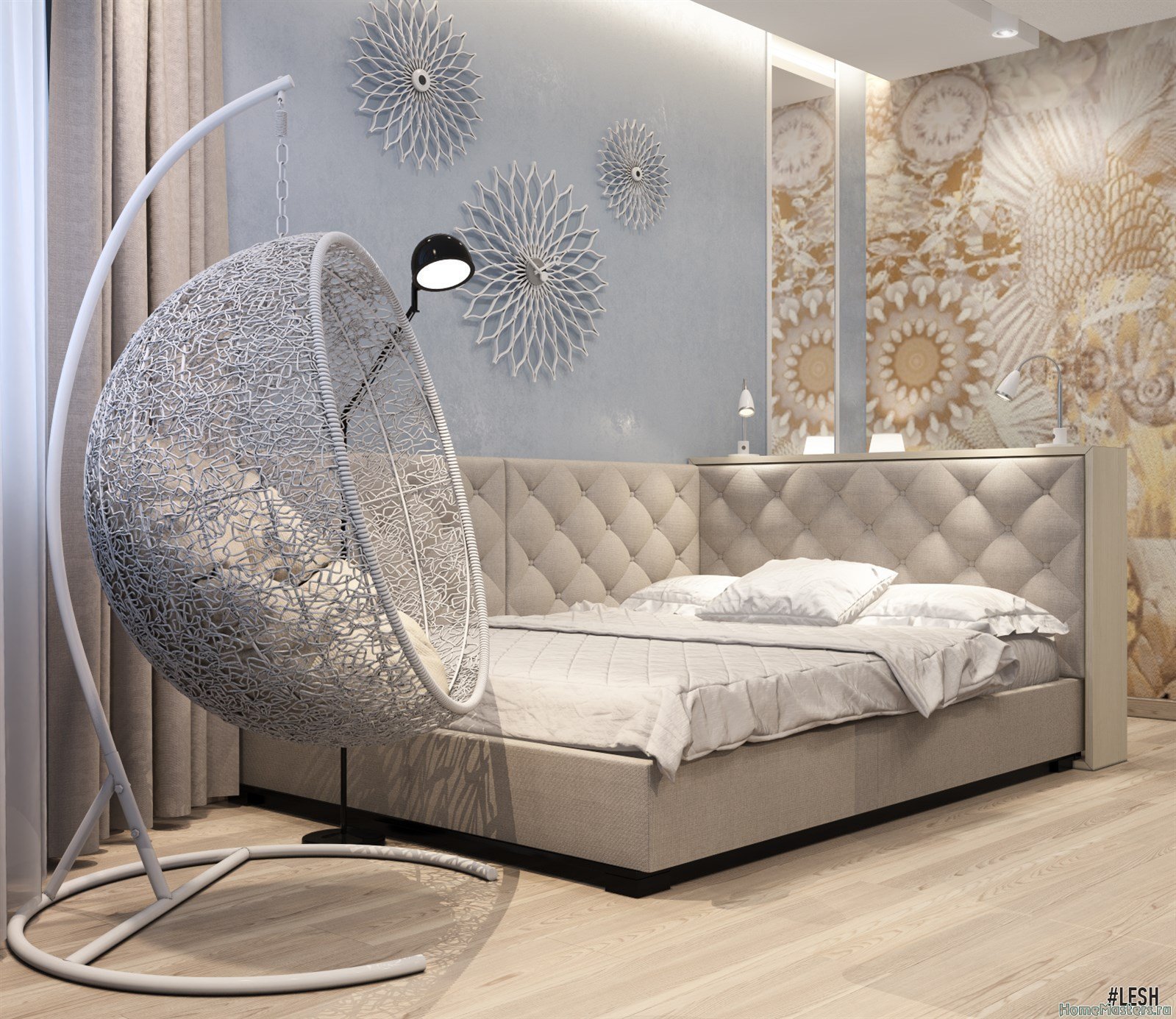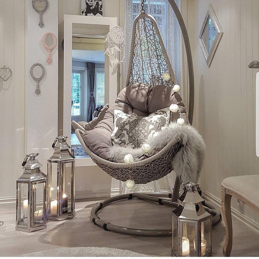 Подвесное кресло в интерьере спальни