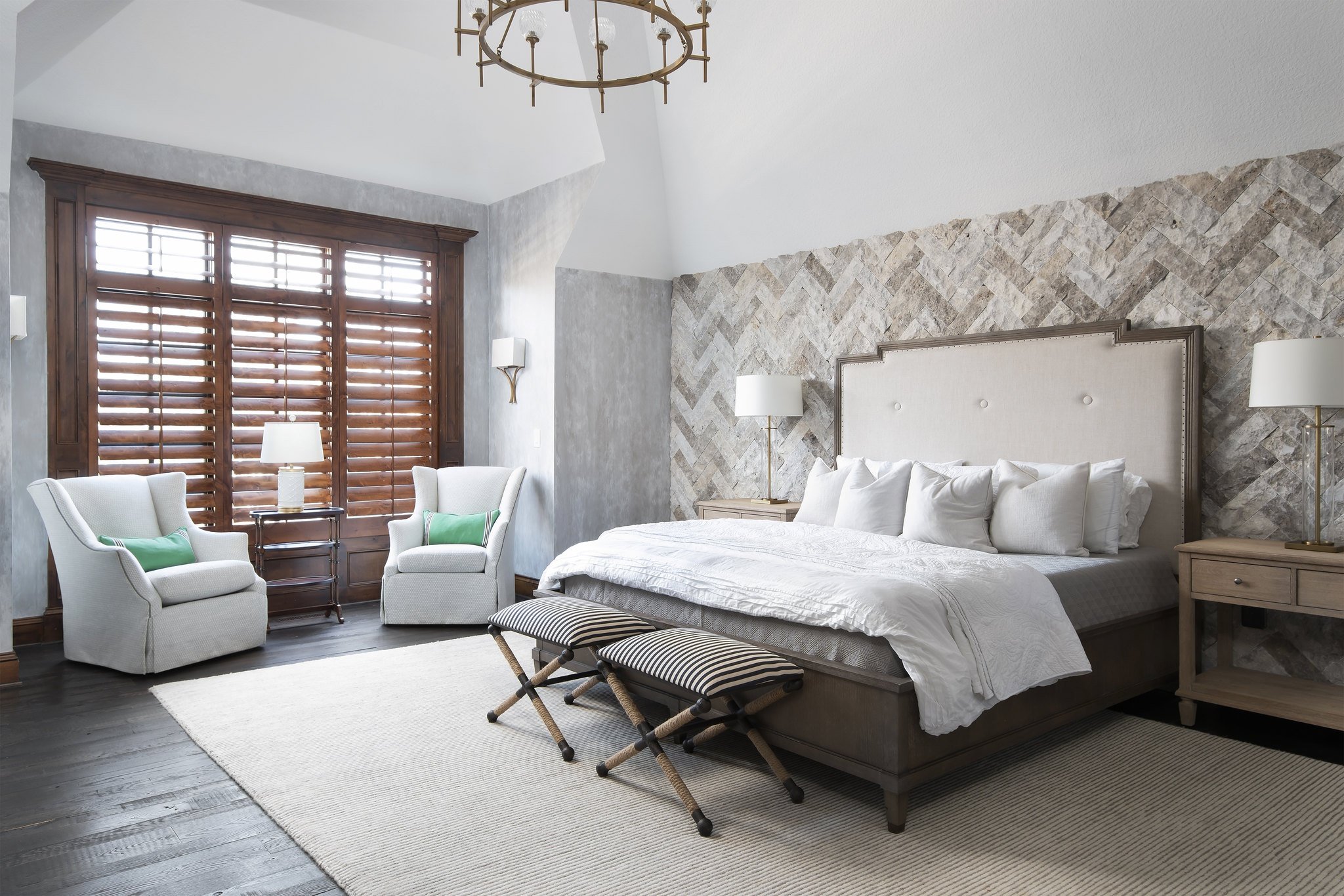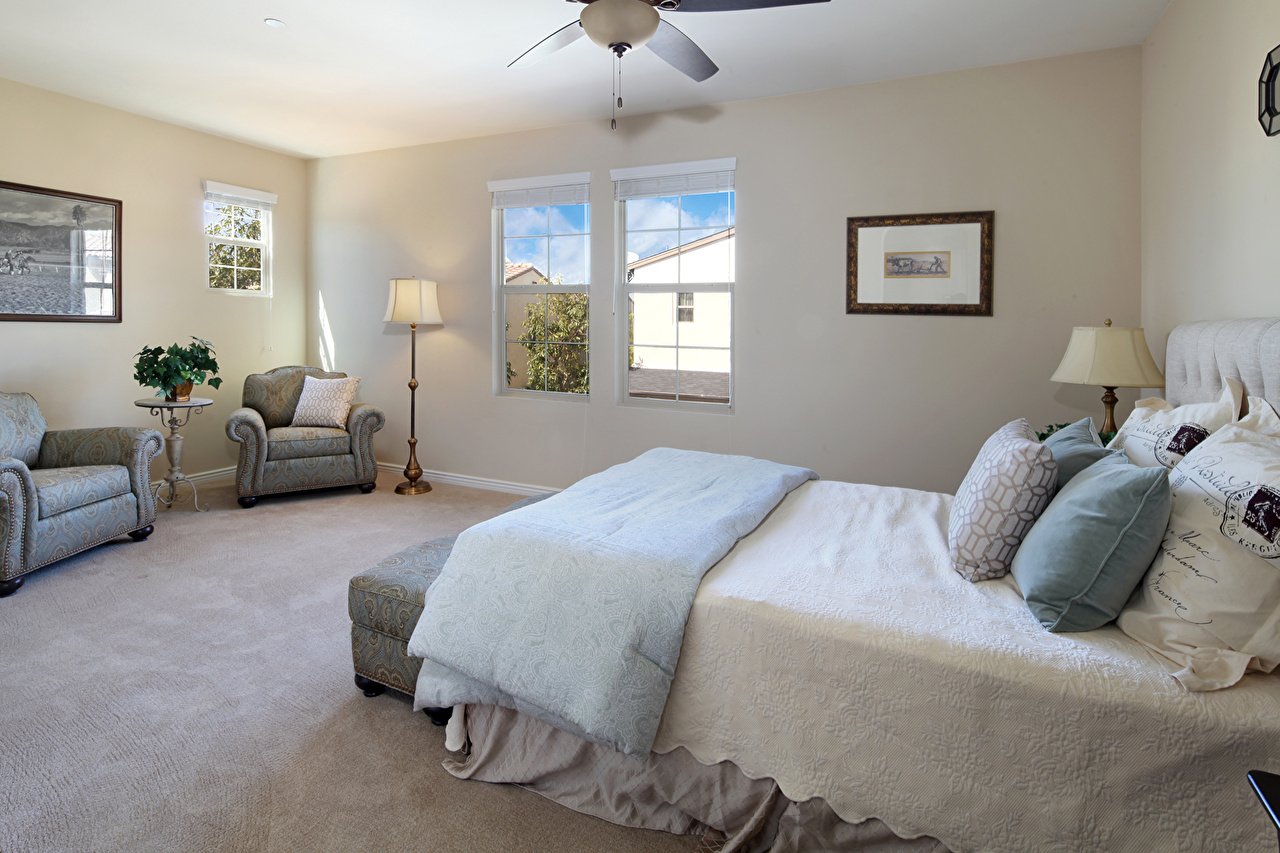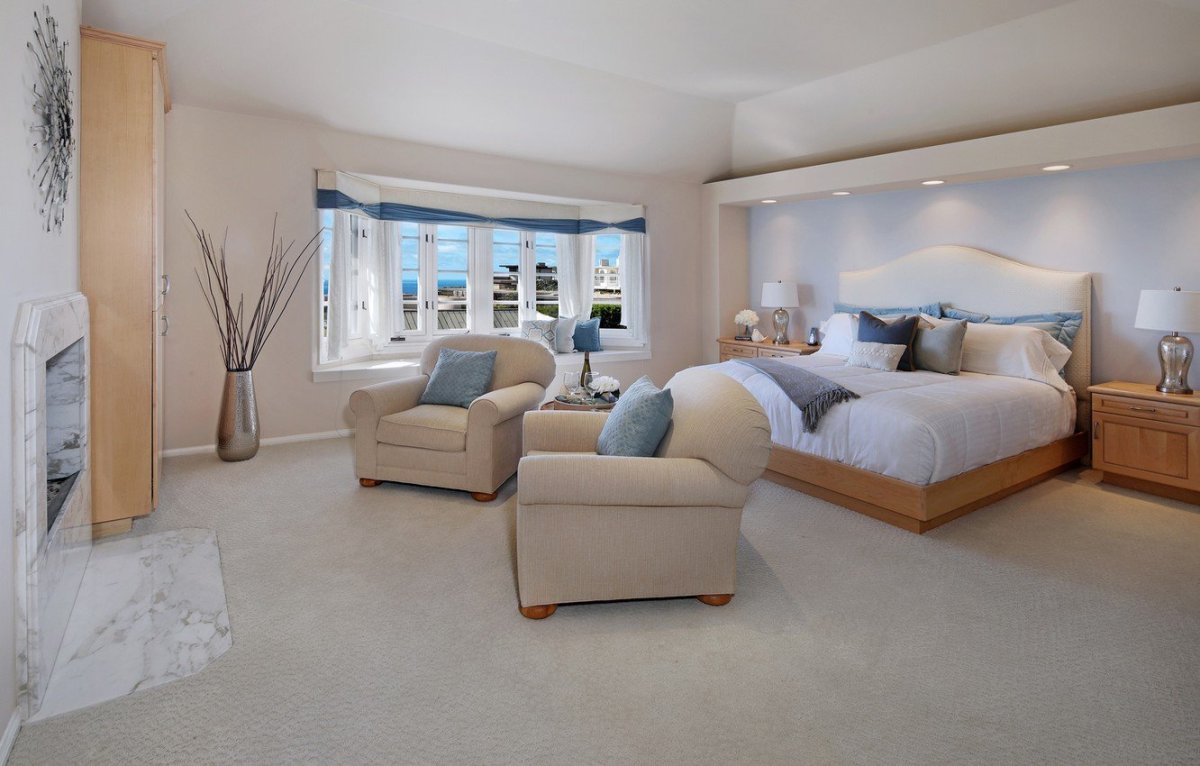 Большая спальня с кроватью и креслами