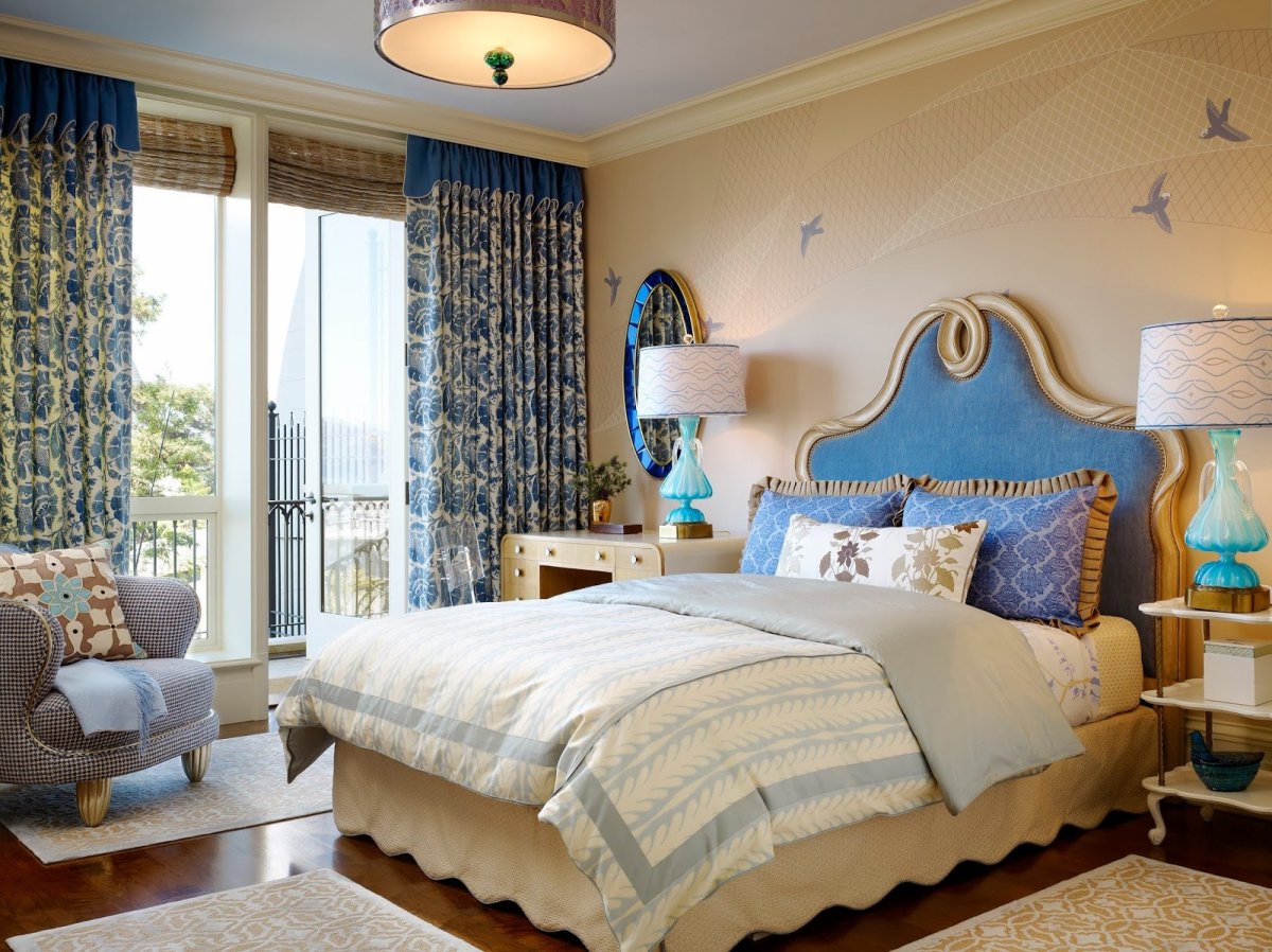 Бежево голубая спальня
