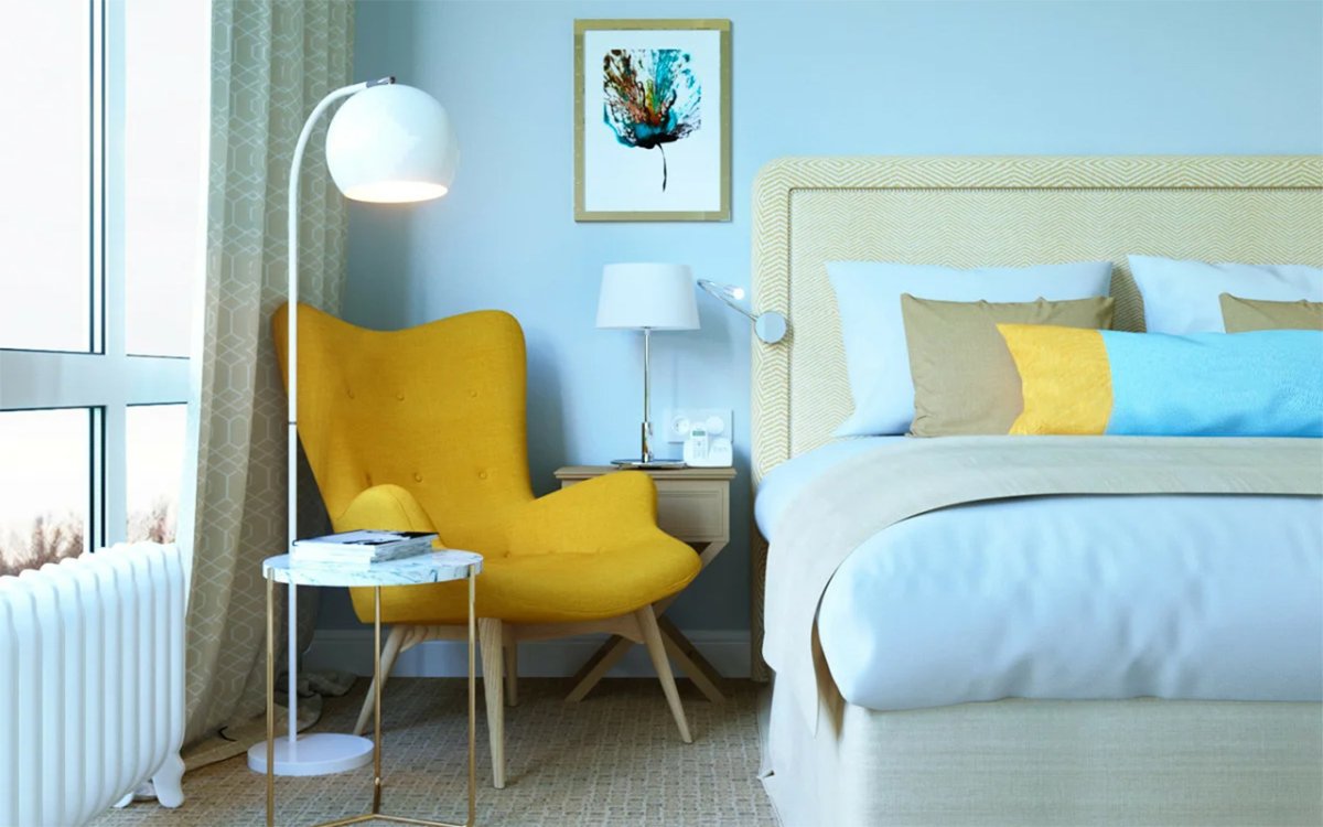 Голубой и желтый в интерьере