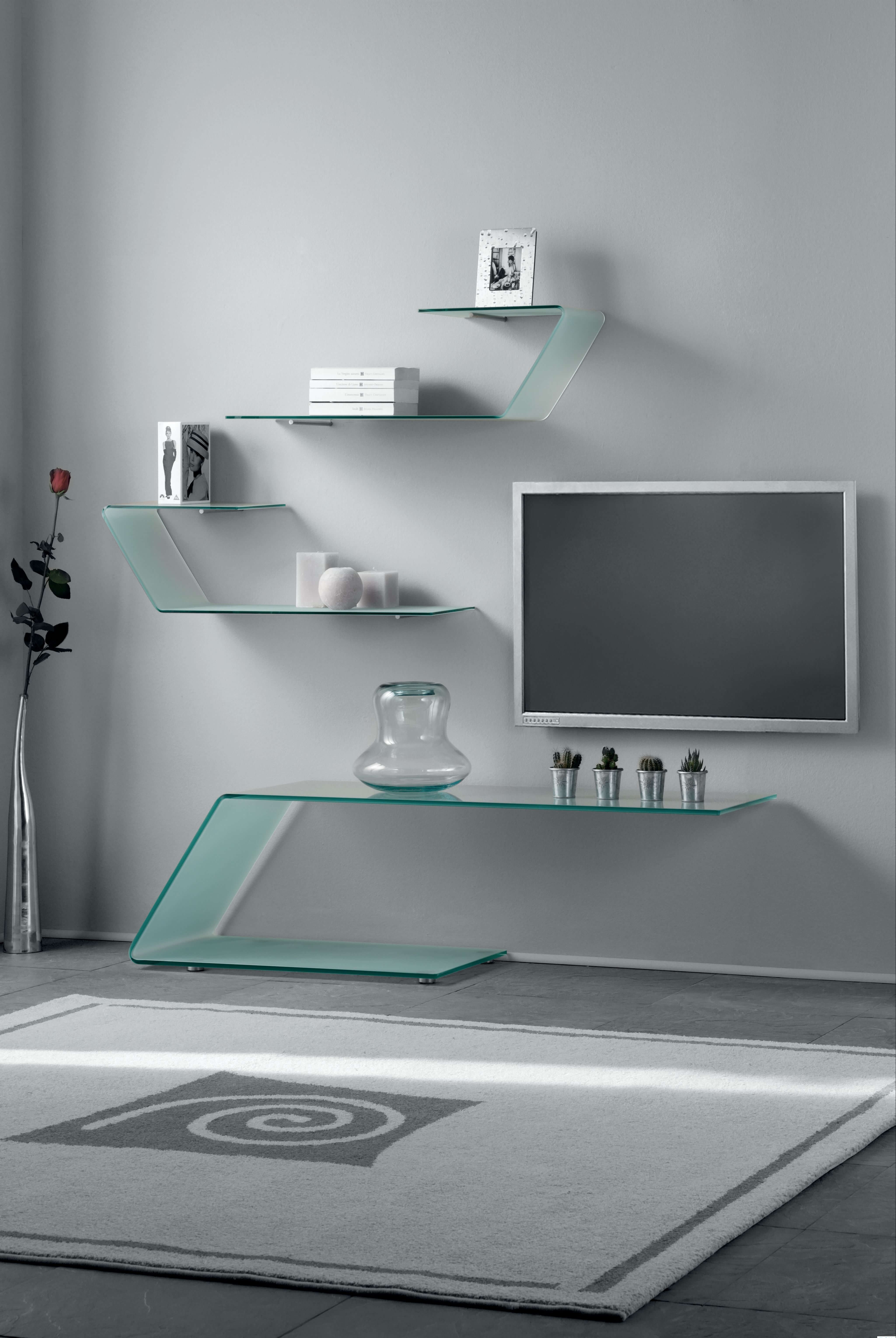 Стеклянные полочки на стену в гостиной