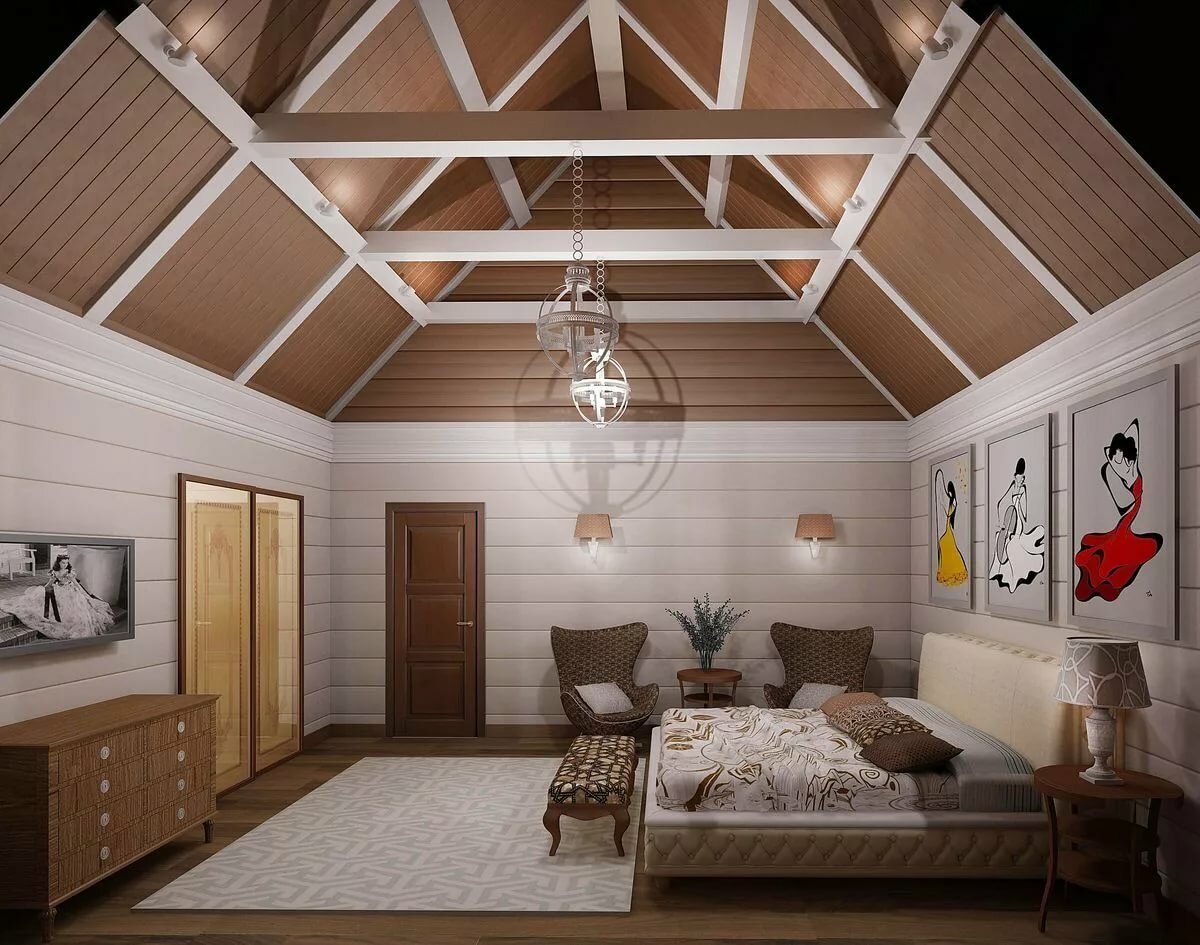 Отделка потолка мансарды