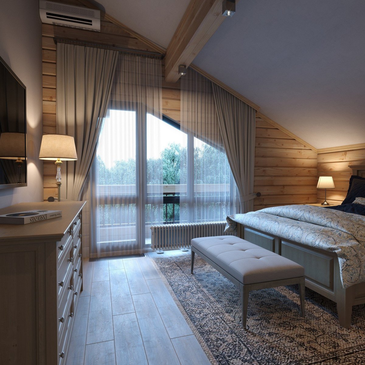 Интерьер деревянной мансарды