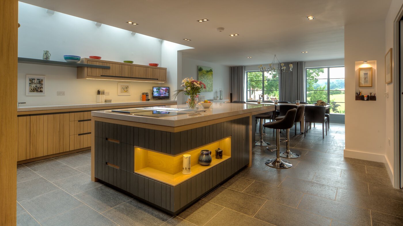 Кухонный остров с плитой и барной стойкой