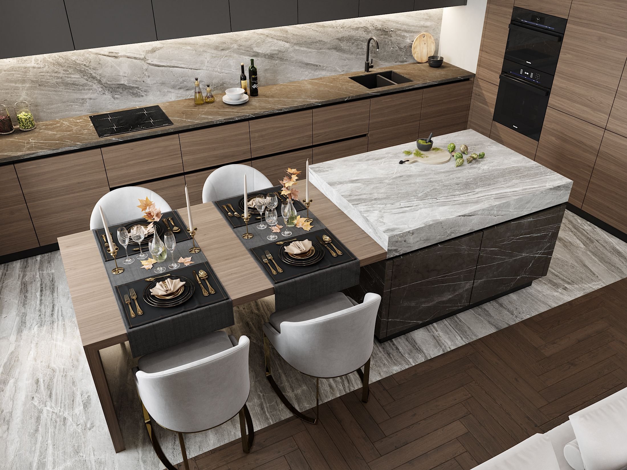 Кухонный остров с приставным столом