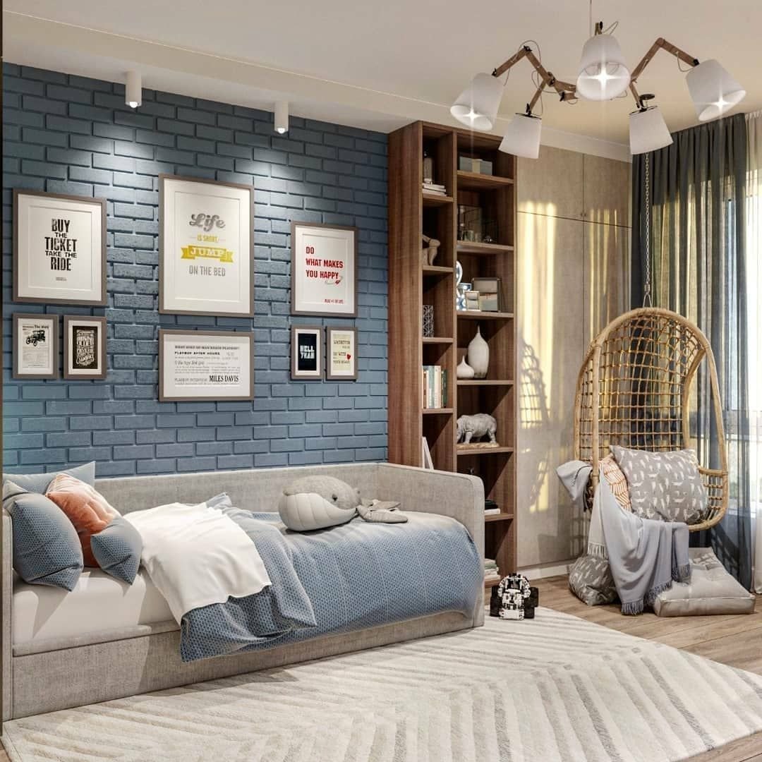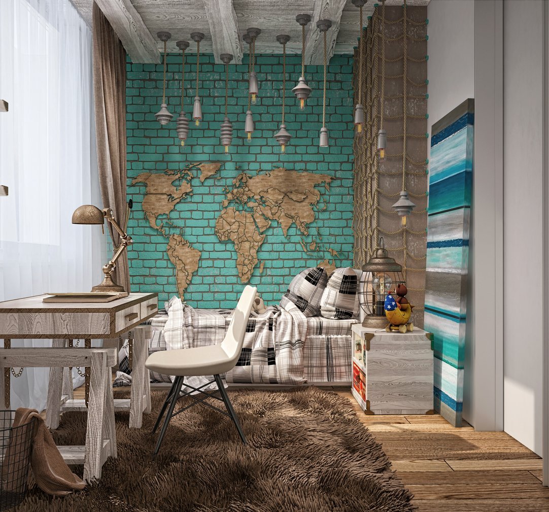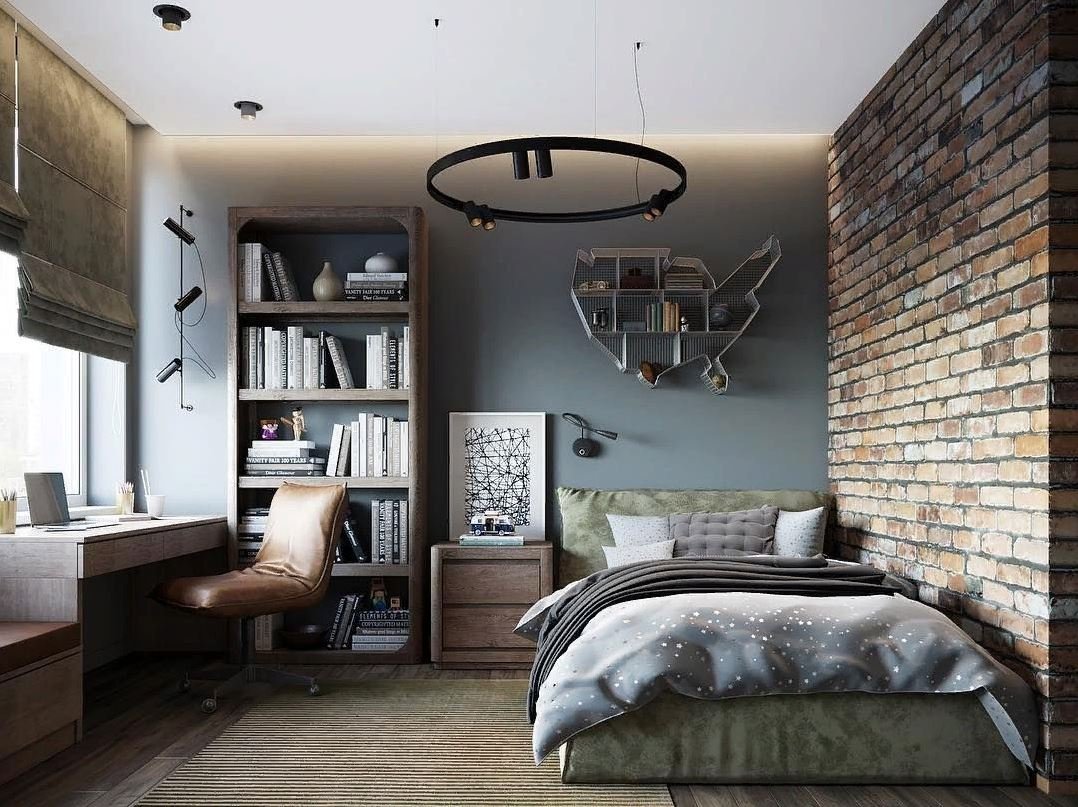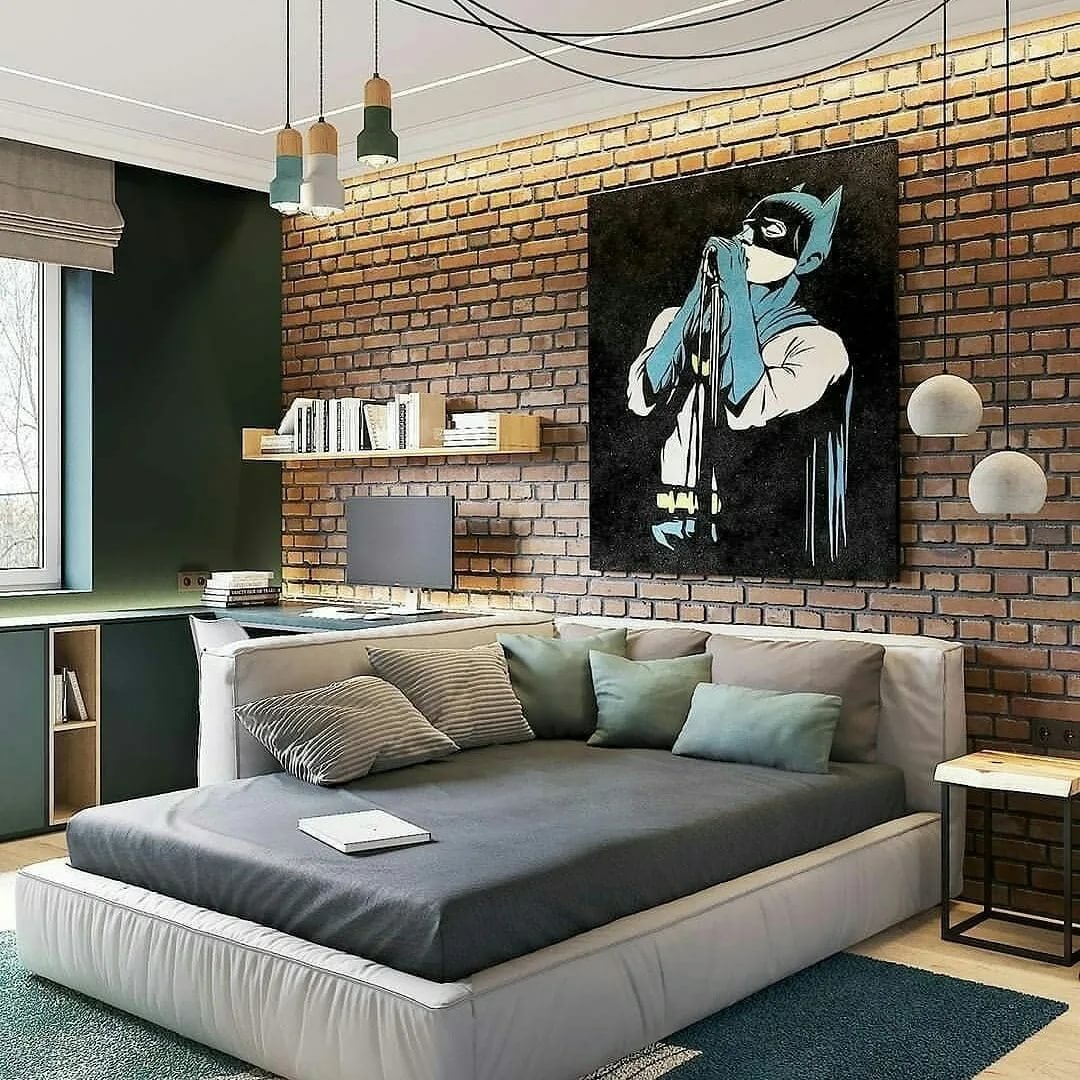 Комната подростка с кирпичной стеной