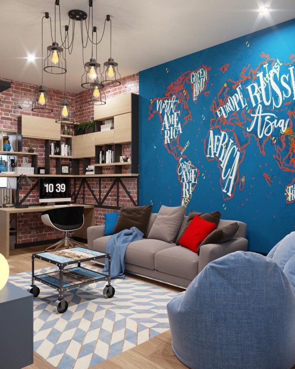 Комната в стиле лофт для подростка мальчика