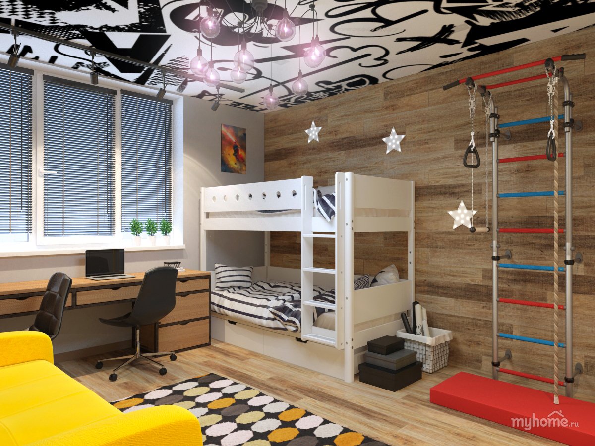 Детская комната в стиле лофт для двоих мальчишек