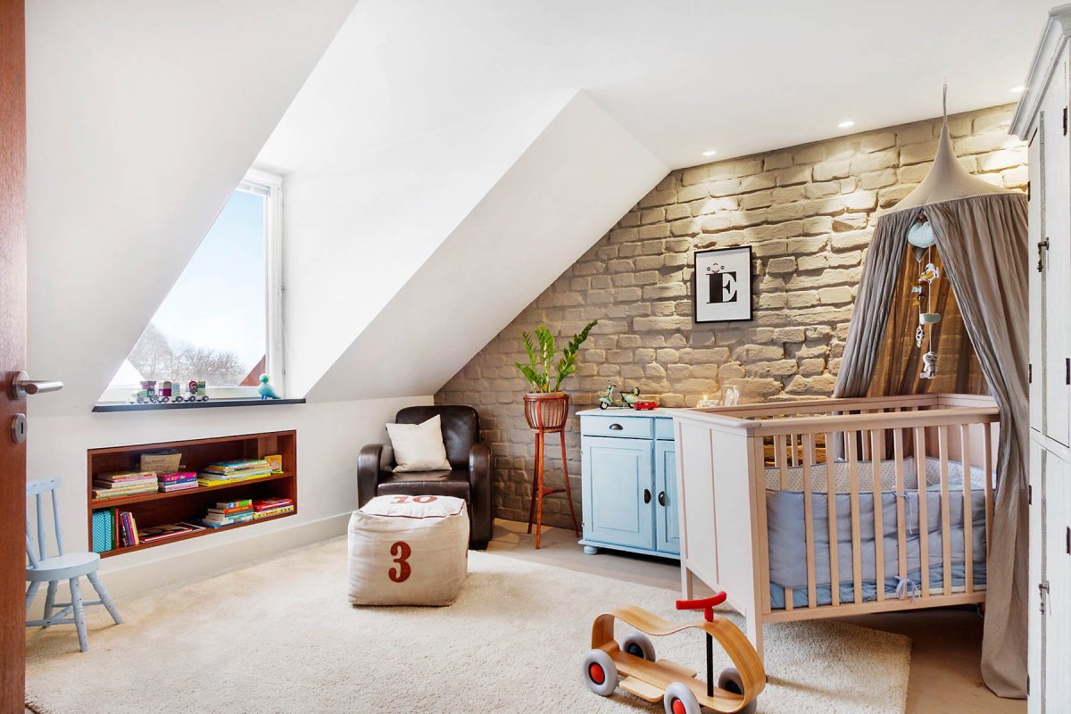 Интерьер детской комнаты на мансарде