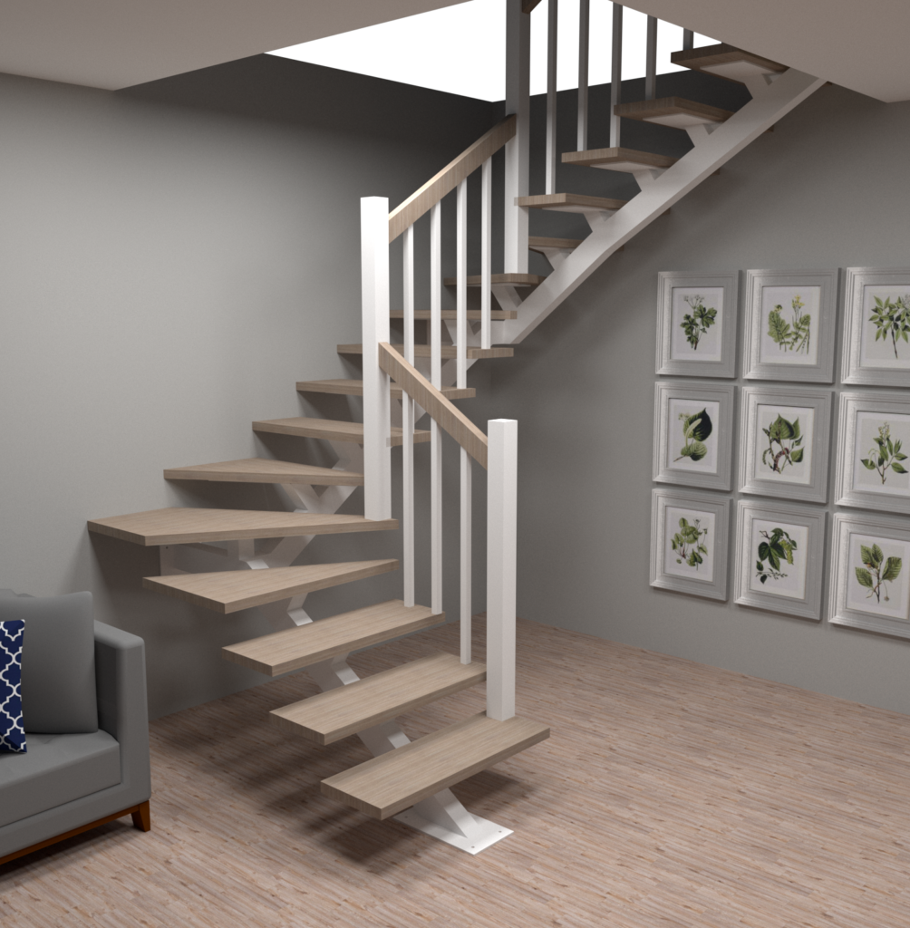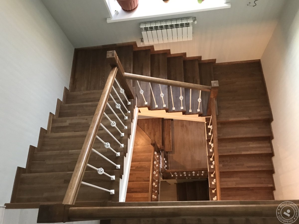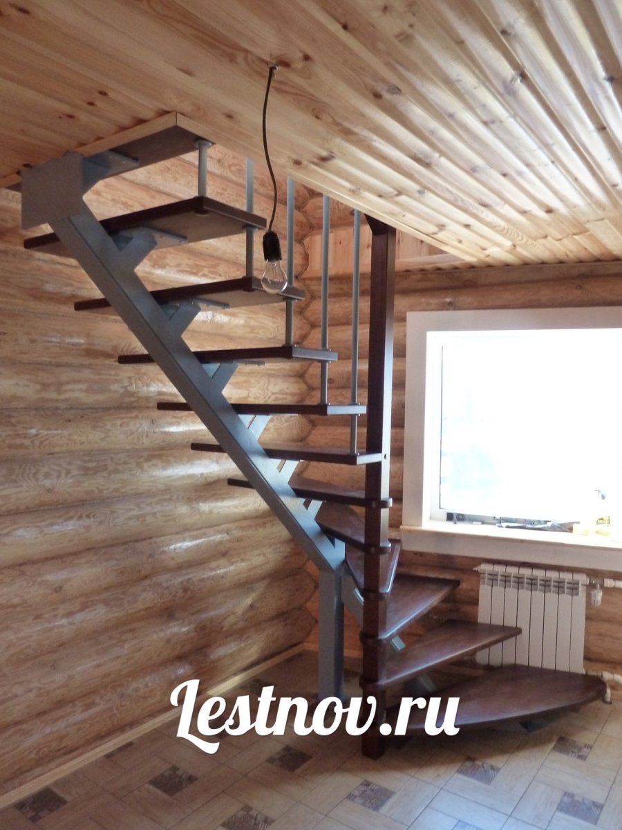 Лестница на второй этаж 90 градусов с забежными ступенями