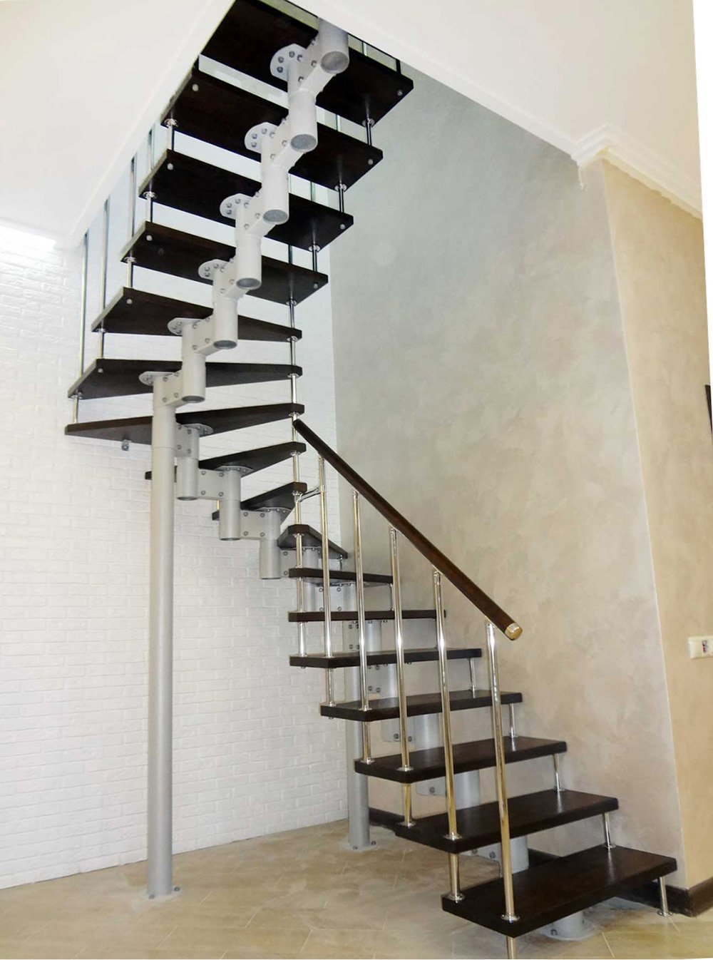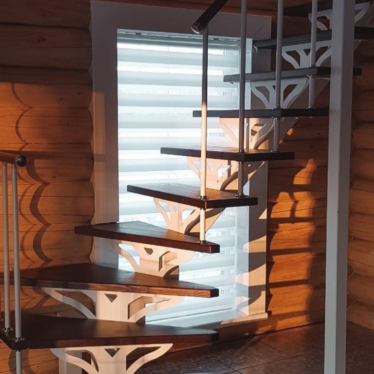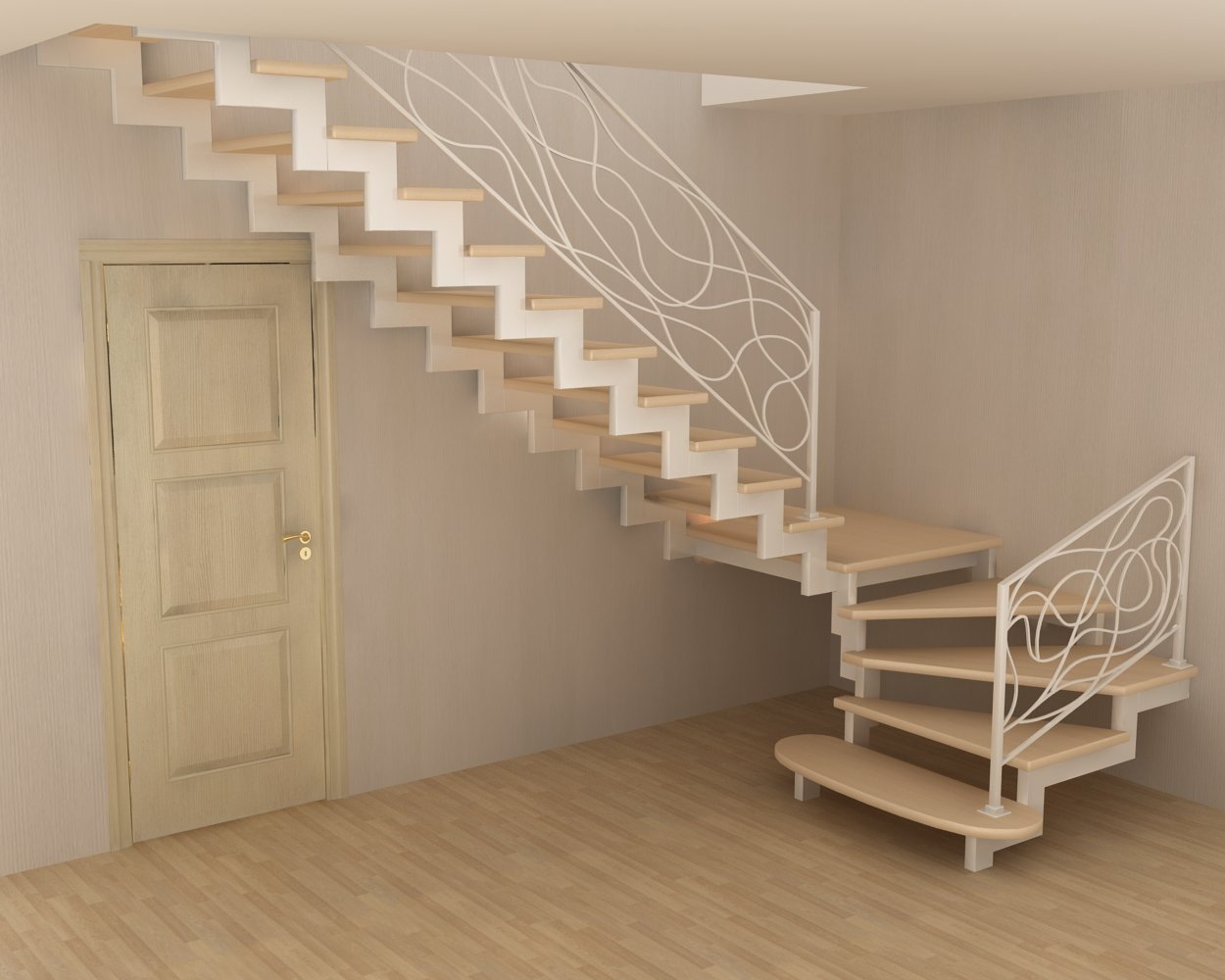 Лестница на второй этаж 90 градусов с забежными ступенями