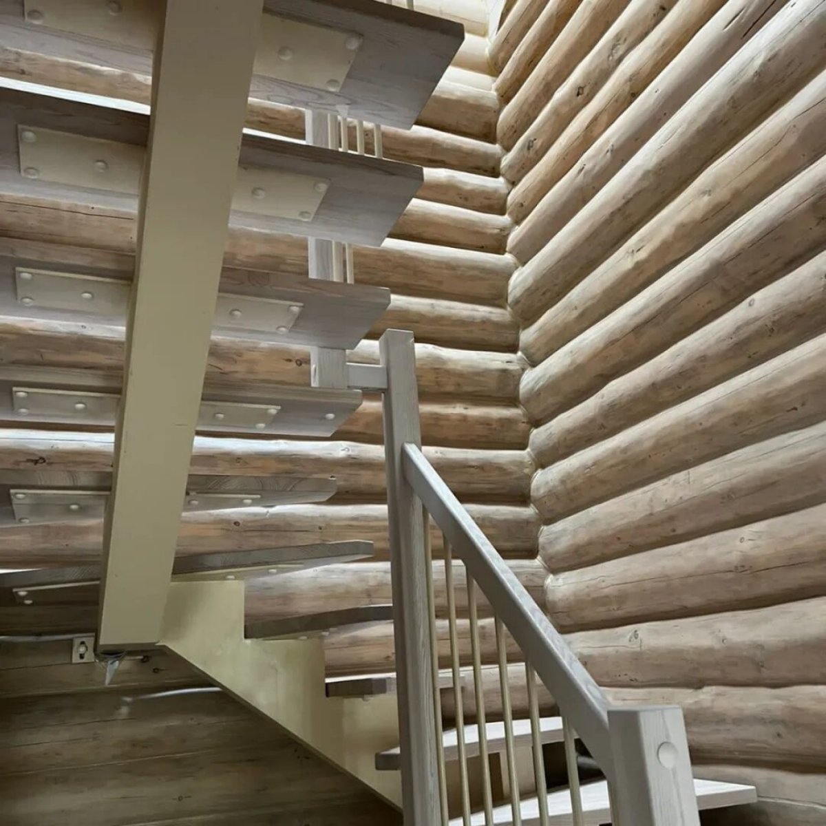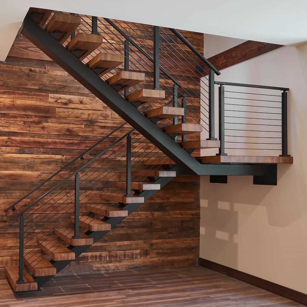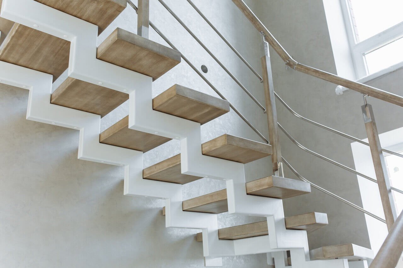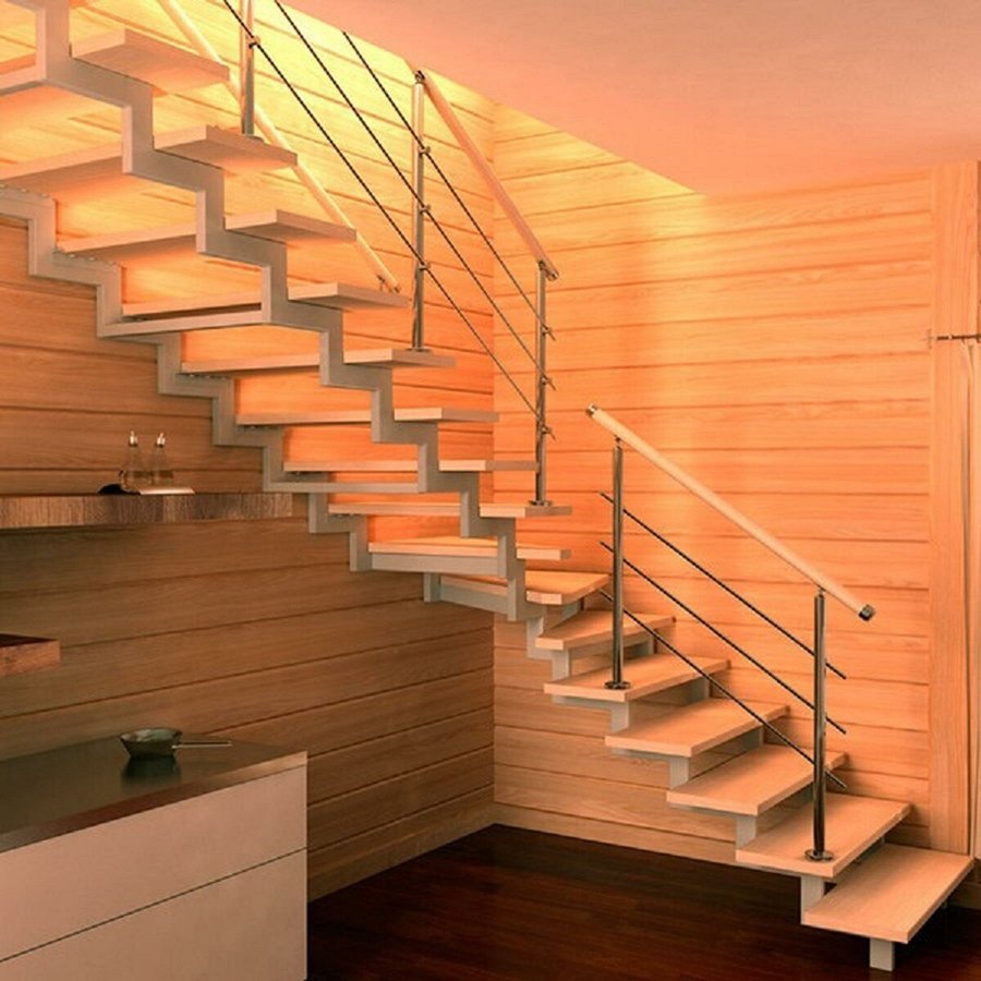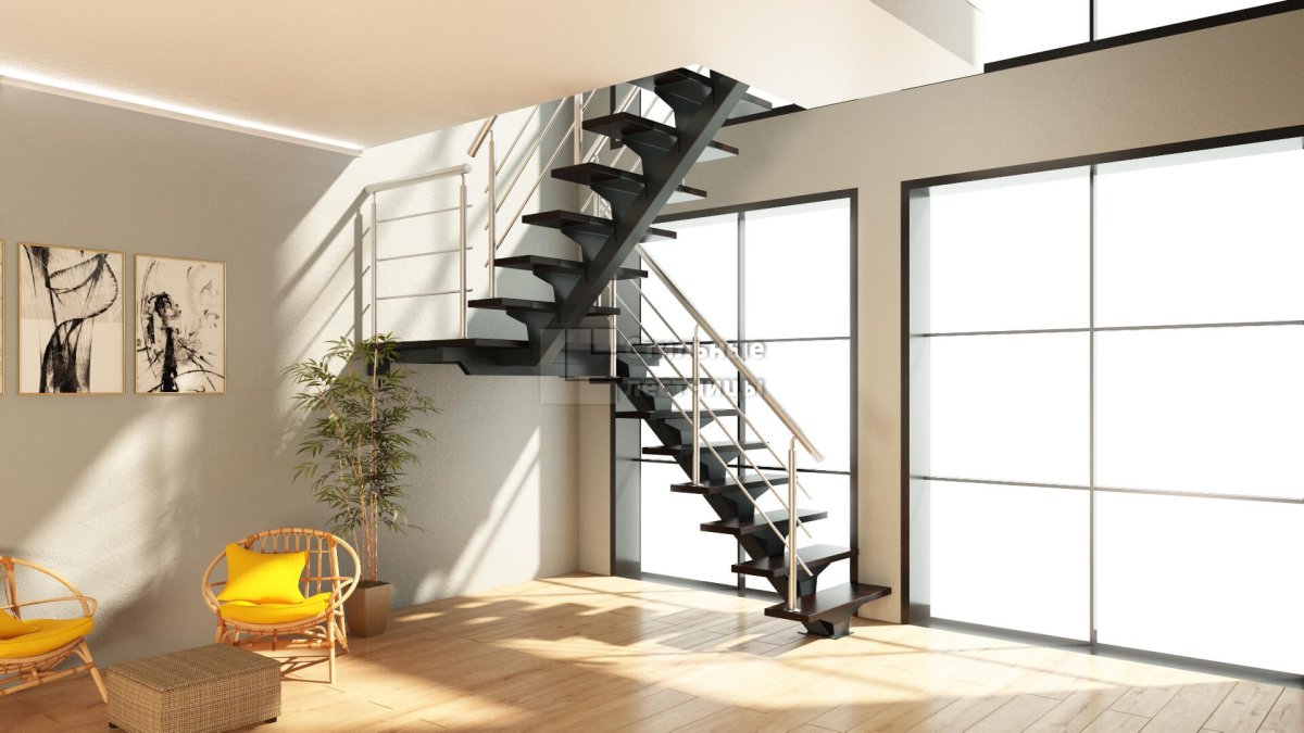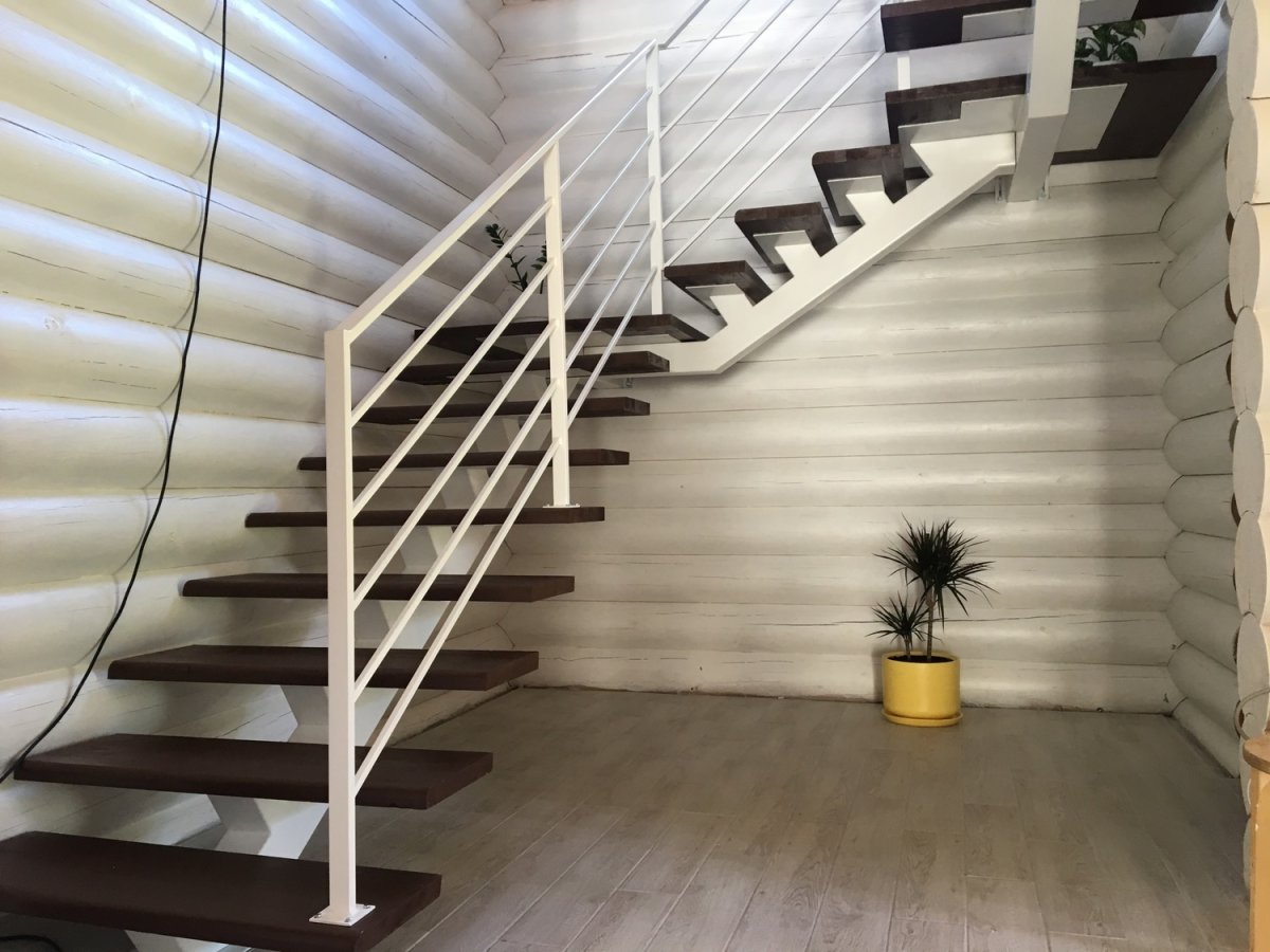 Лестница на второй этаж на косоурах