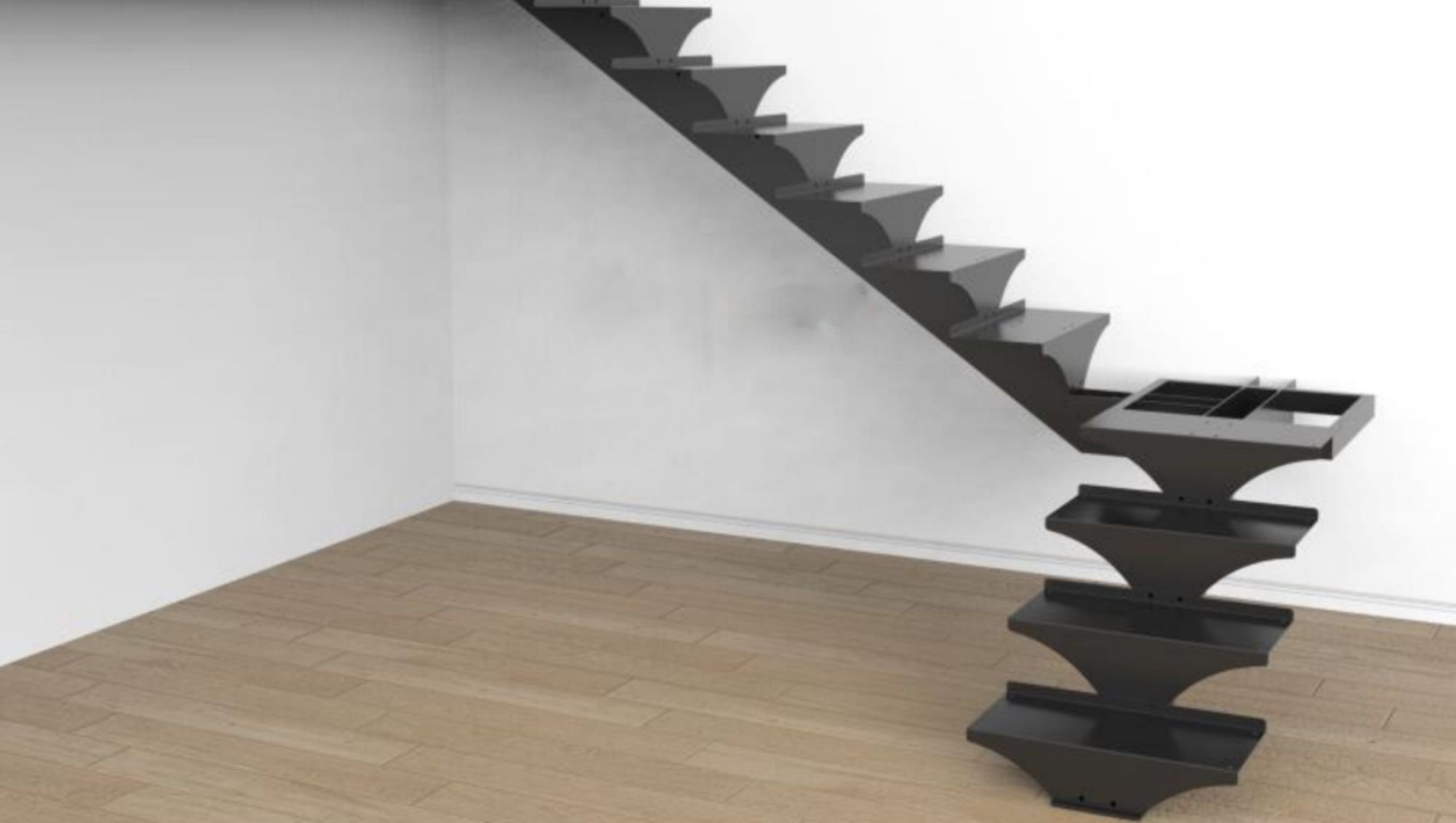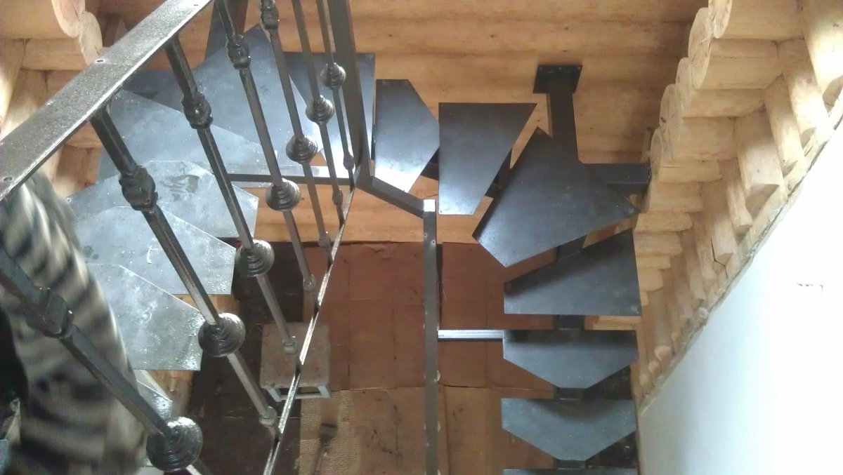 Металлическая лестница на одном косоуре с забежными ступенями