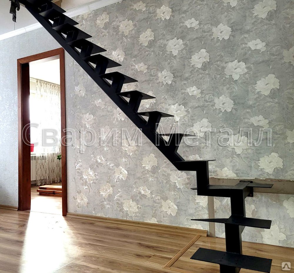 Металлическая лестница утиный шаг на косоуре лс-089