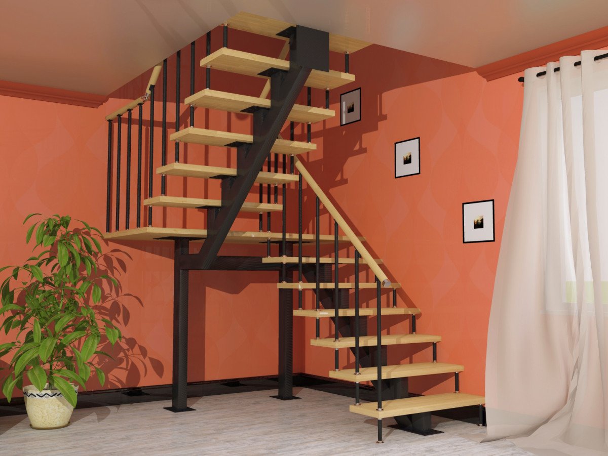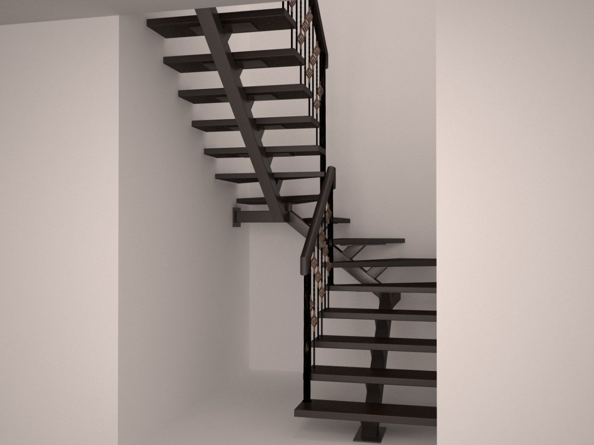 Лестница на монокосоуре с площадкой 90 градусов