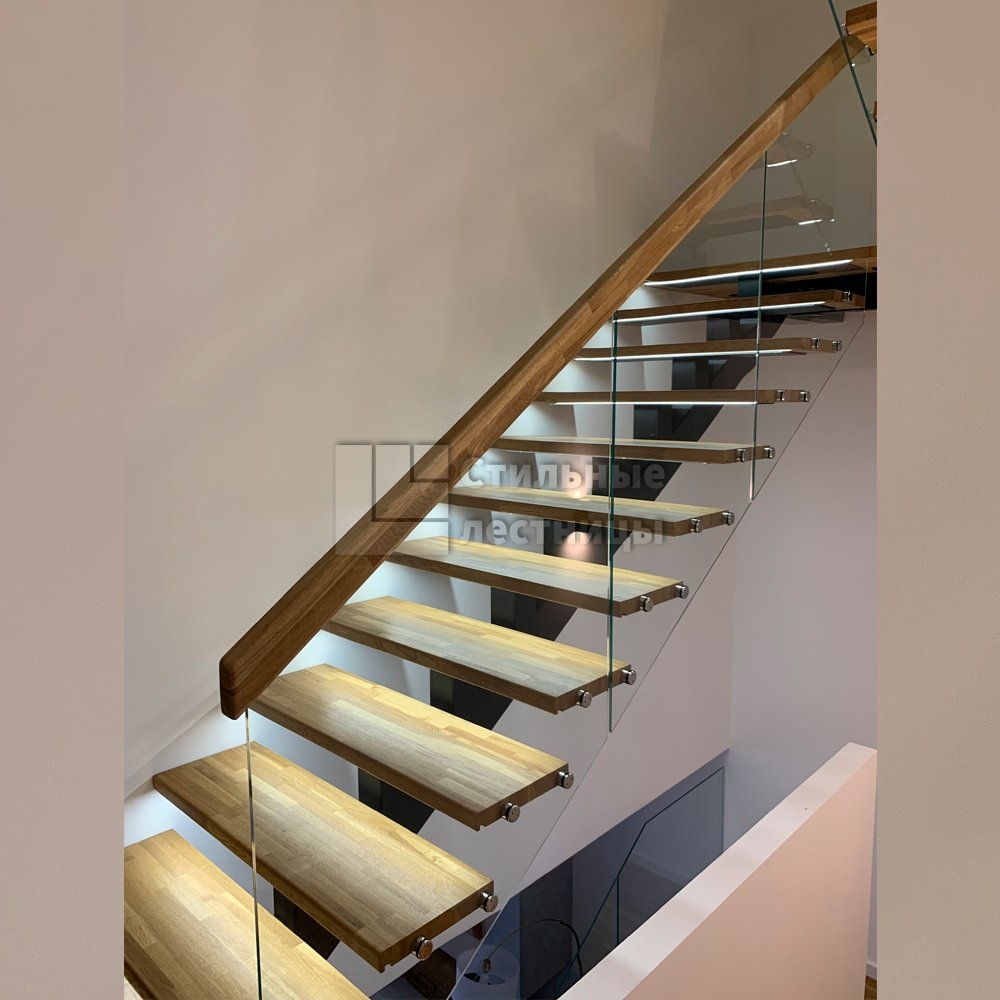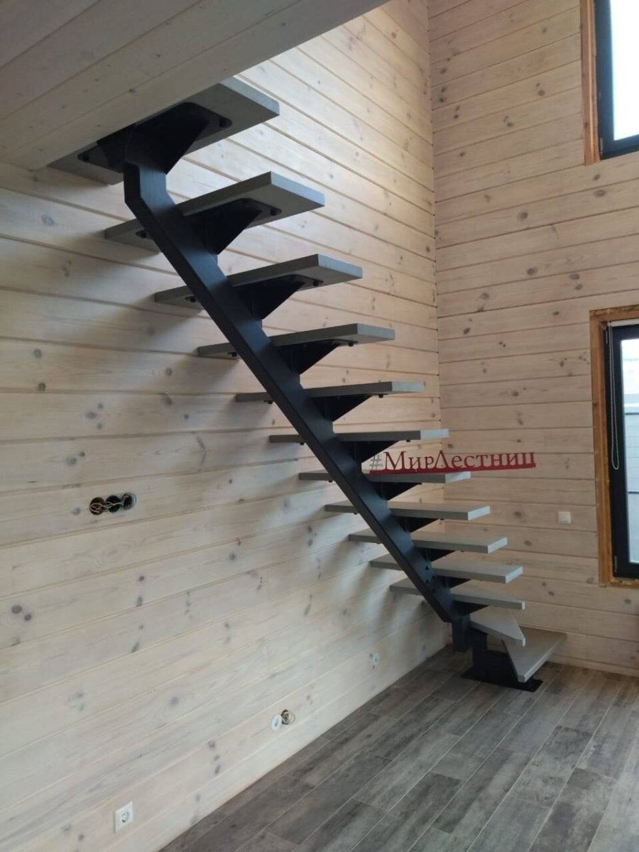 Лестница на второй этаж на одном косоуре