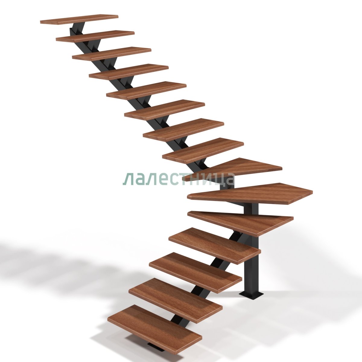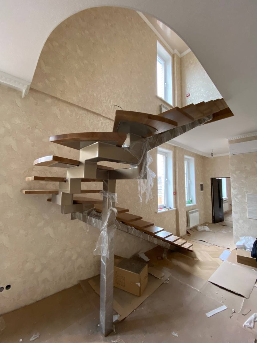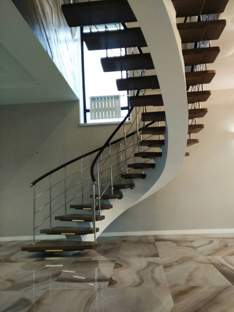 Лестница на монокосоуре с забежными ступенями