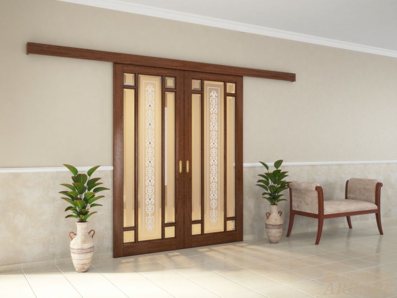 Двери раздвижные со стеклом а-010 т2 - ( 860*2030*18 ) бук