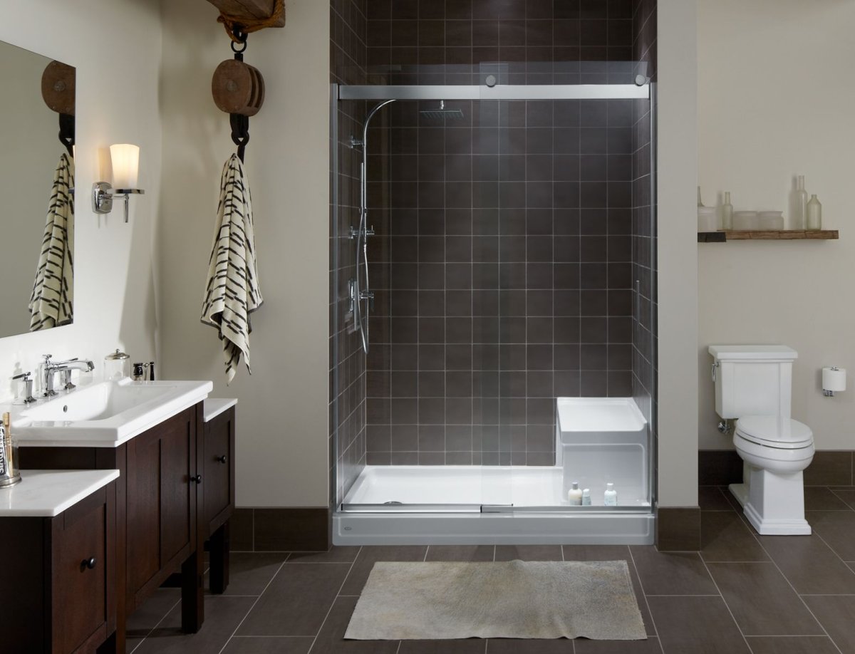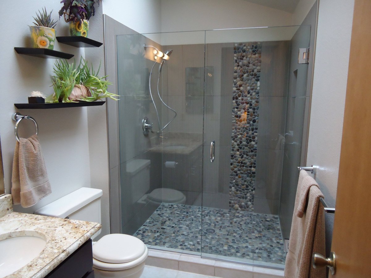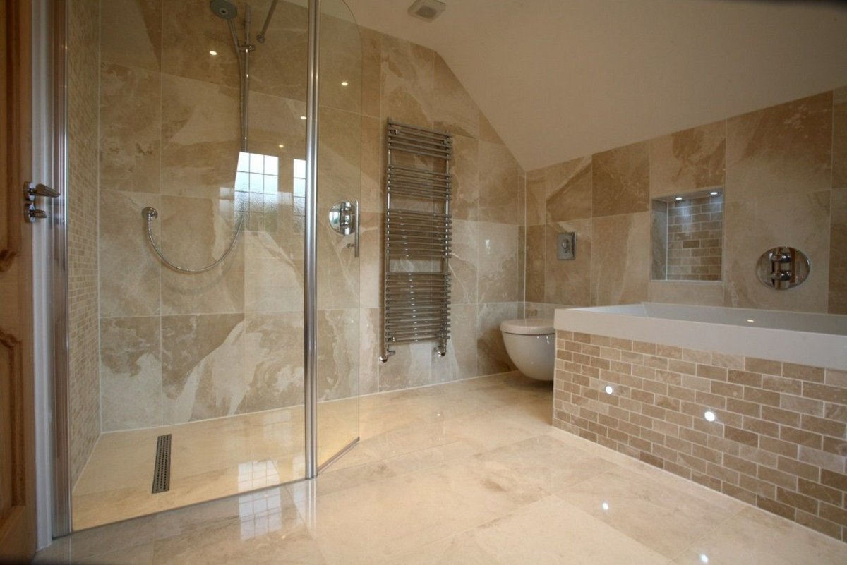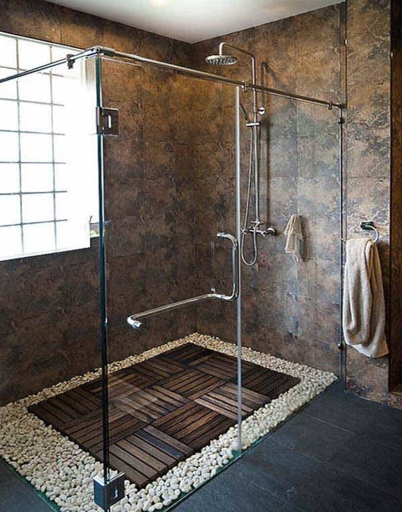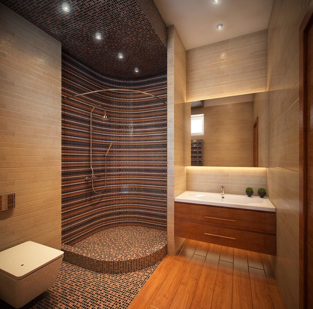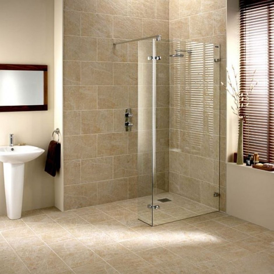 Интерьеры ванных комнат с душевой без поддона