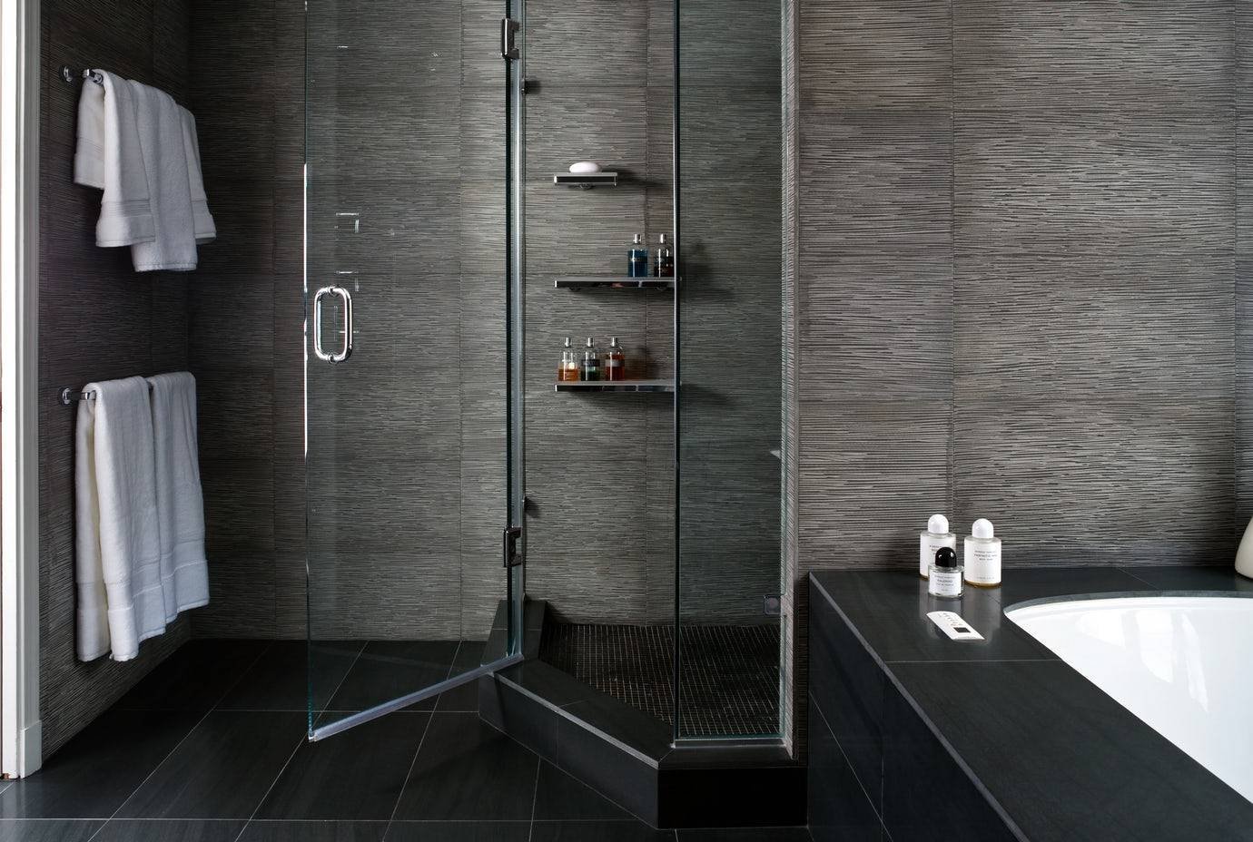 Ванная комната с душевой из плитки