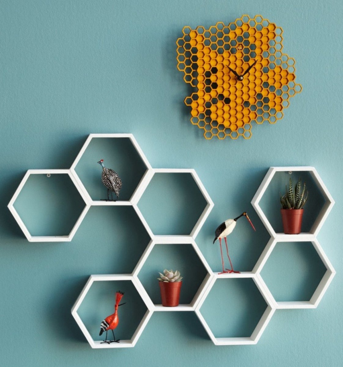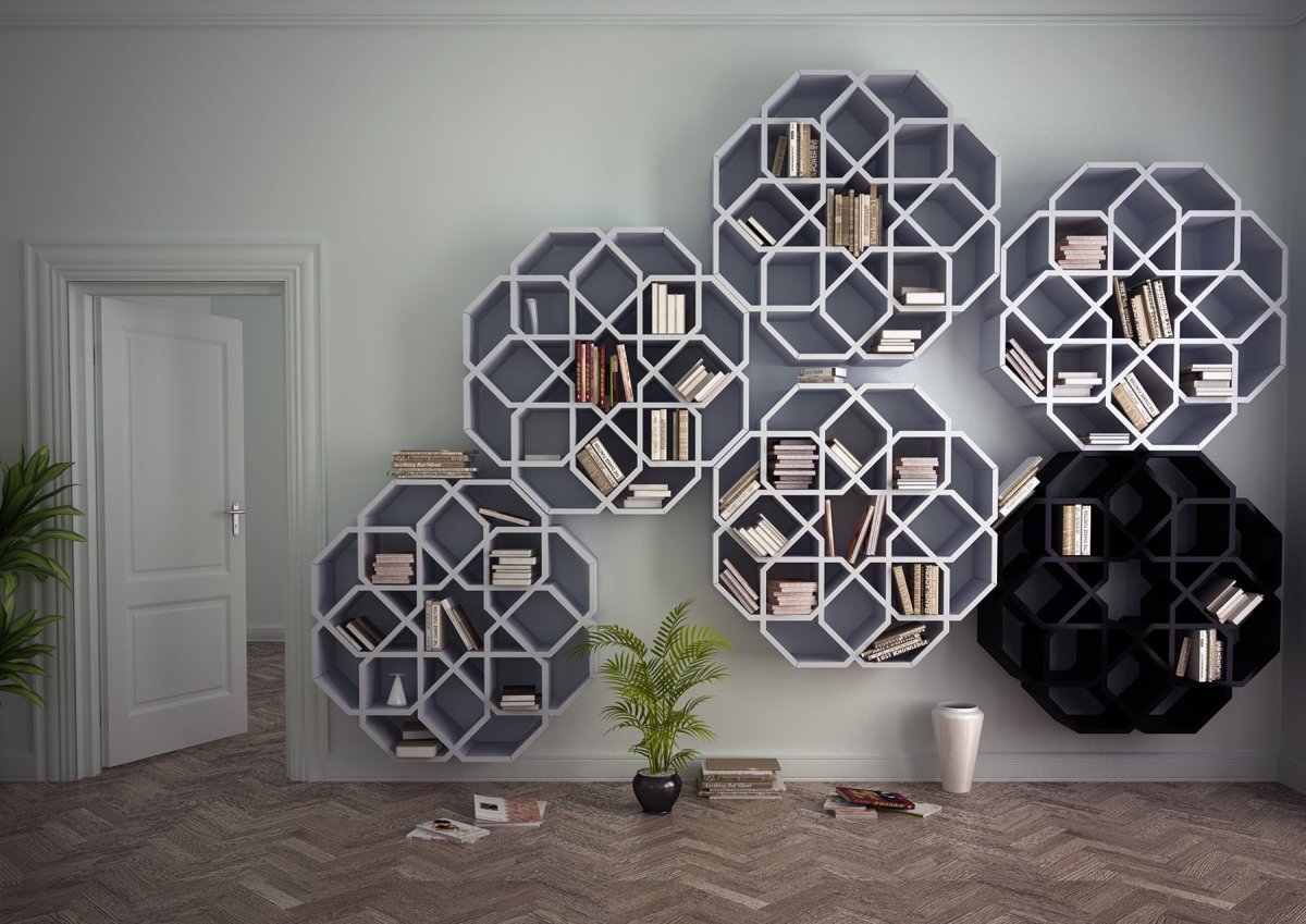 Полочки соты в интерьере
