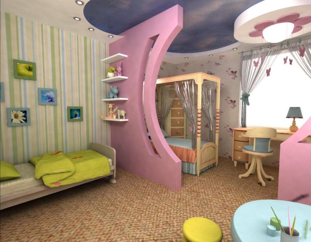 Зонирование детской комнаты для двоих разнополых детей