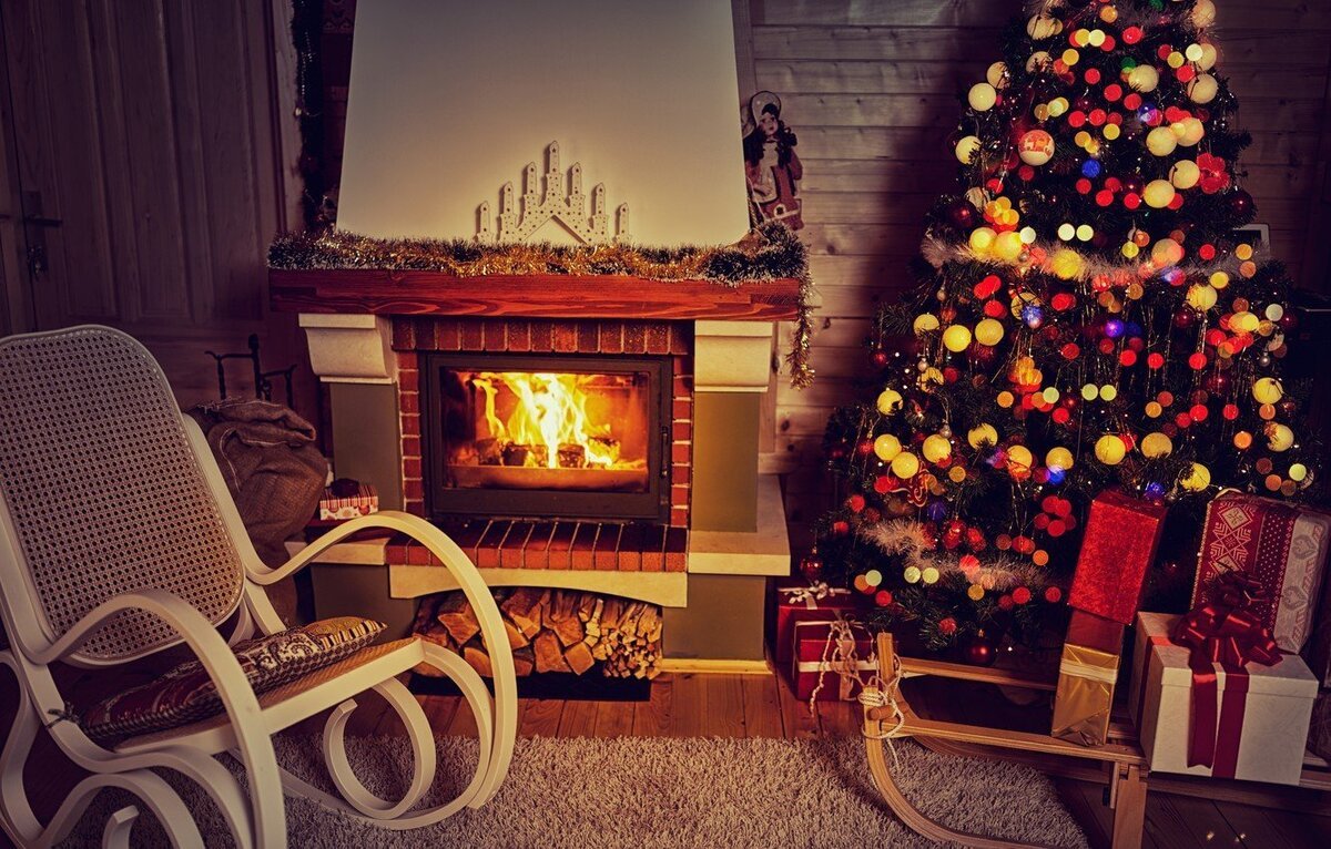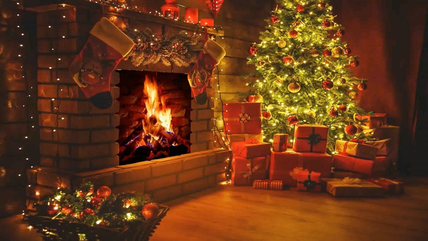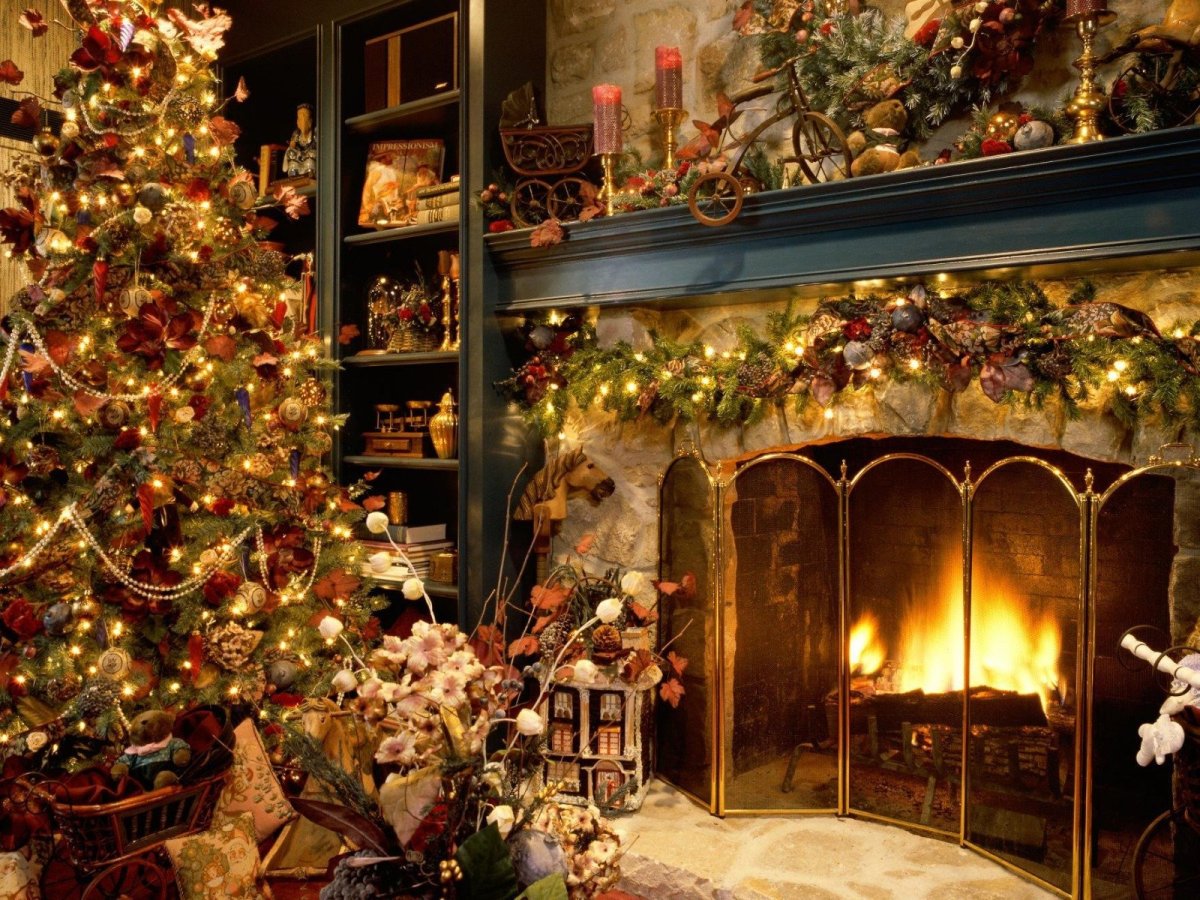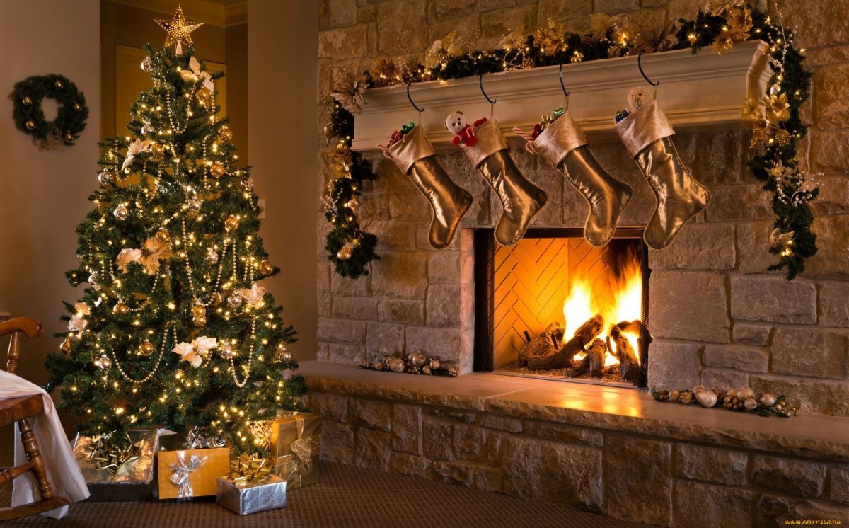 Новогоднее фото на рабочий стол на телефон камин елка Кружка