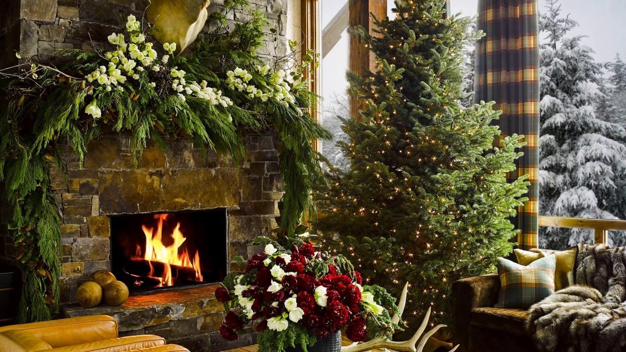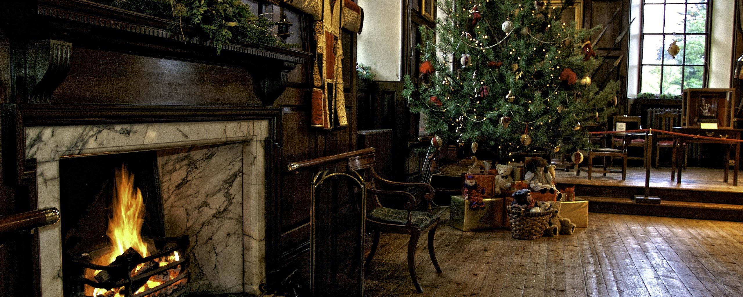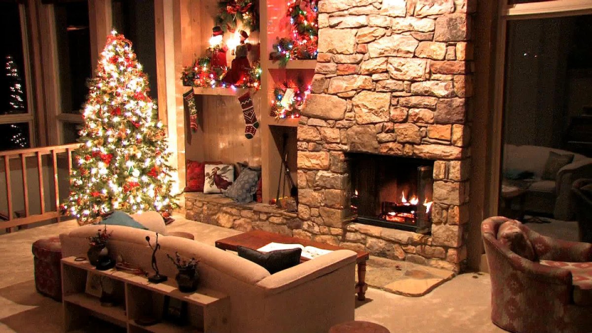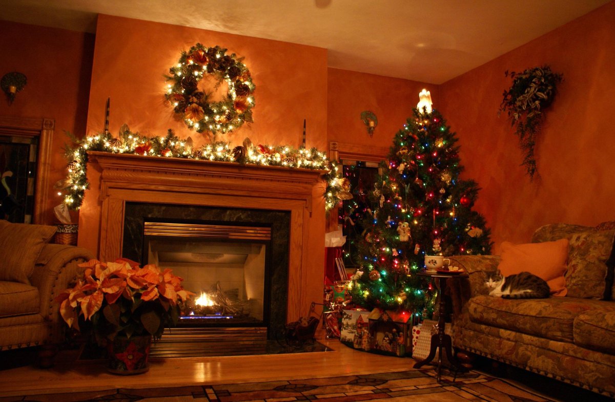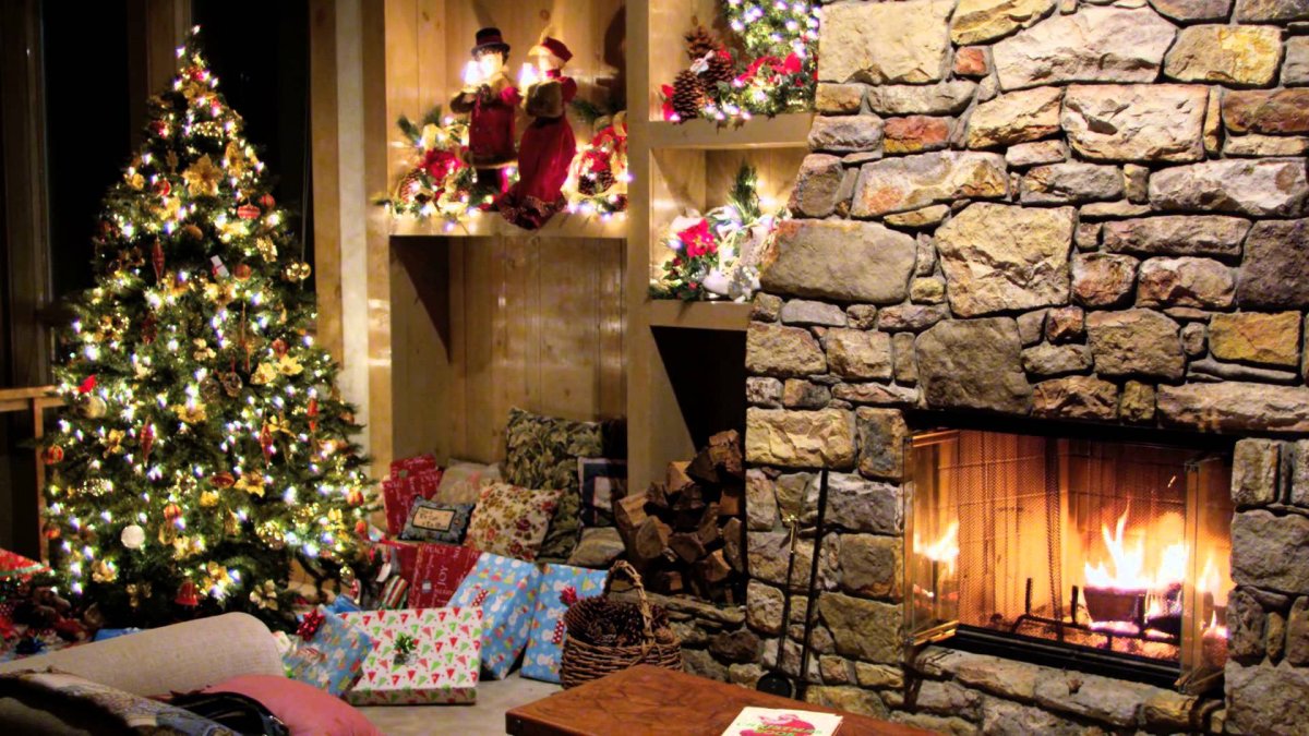 Новогоднее фото на рабочий стол на телефон камин елка Кружка
