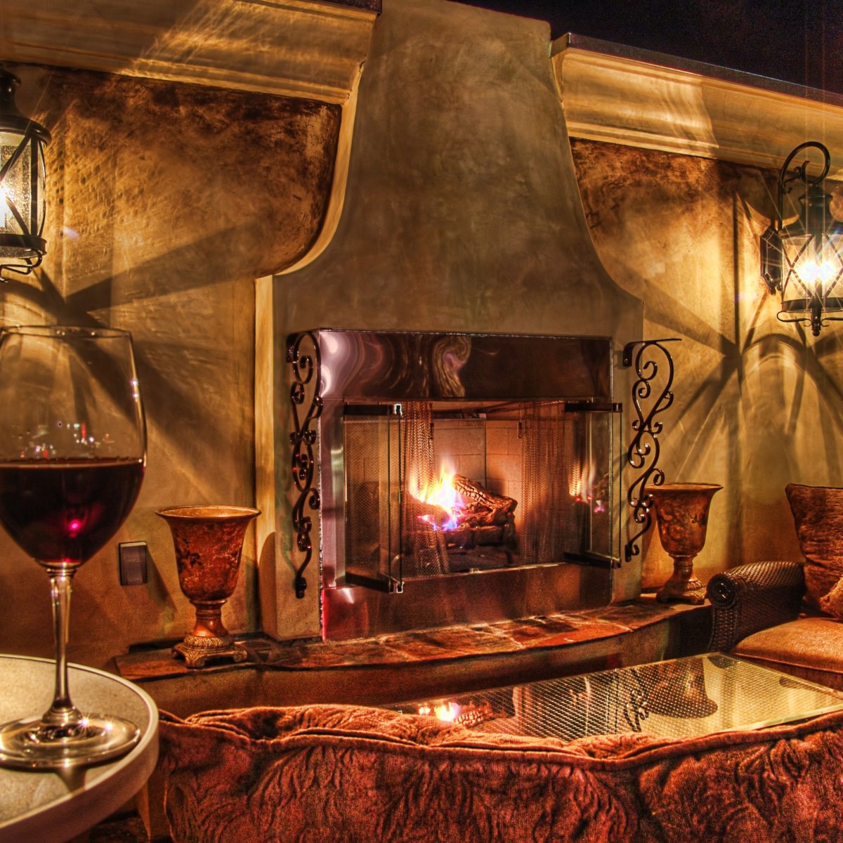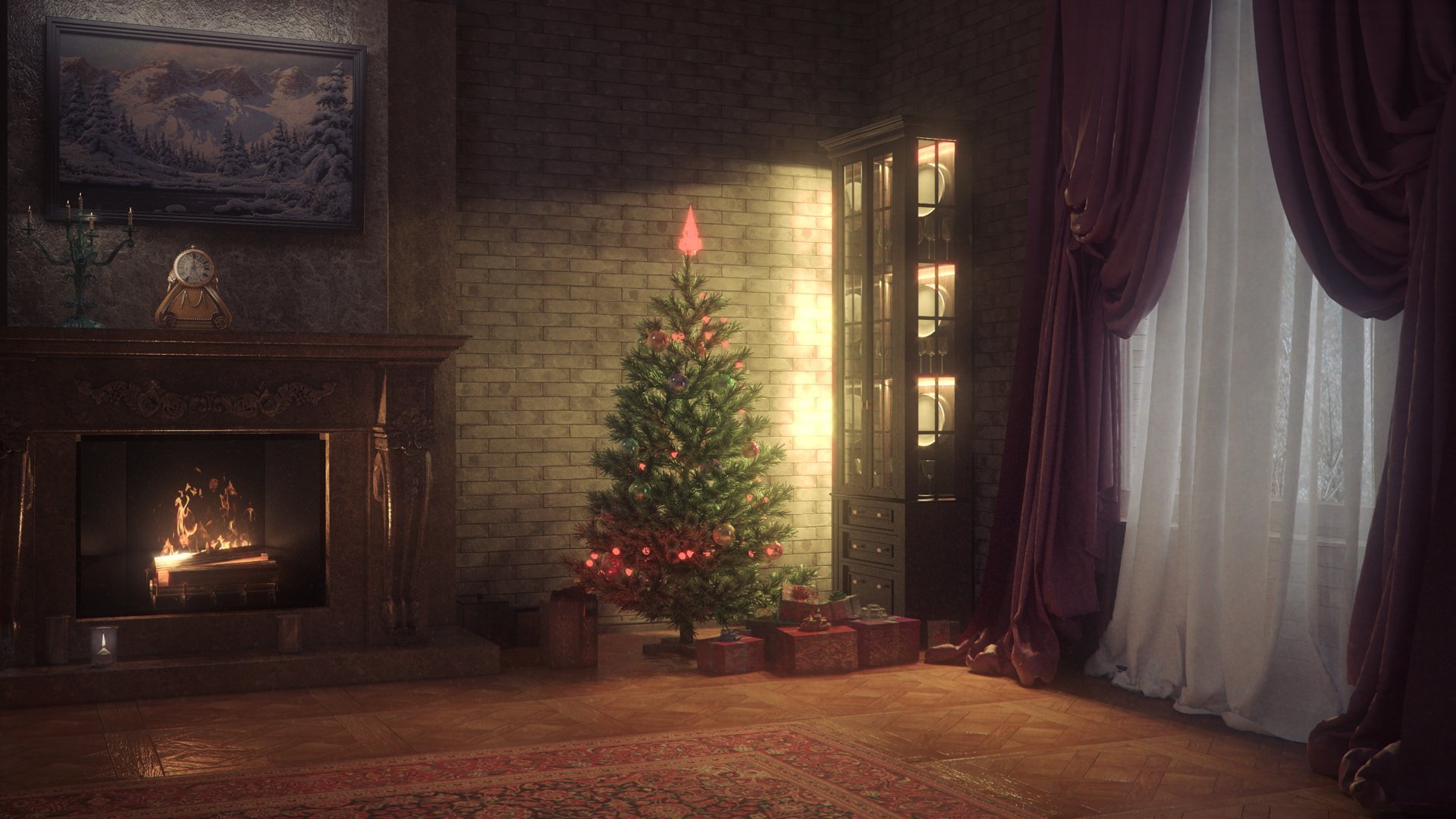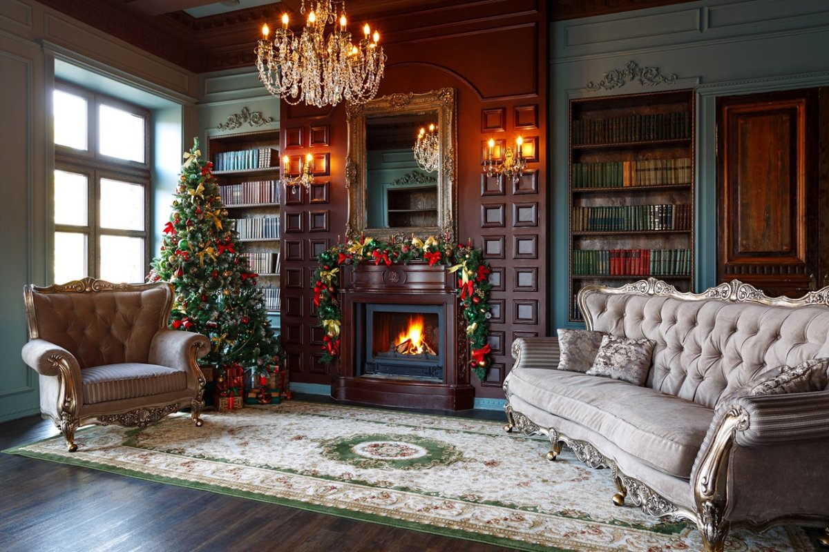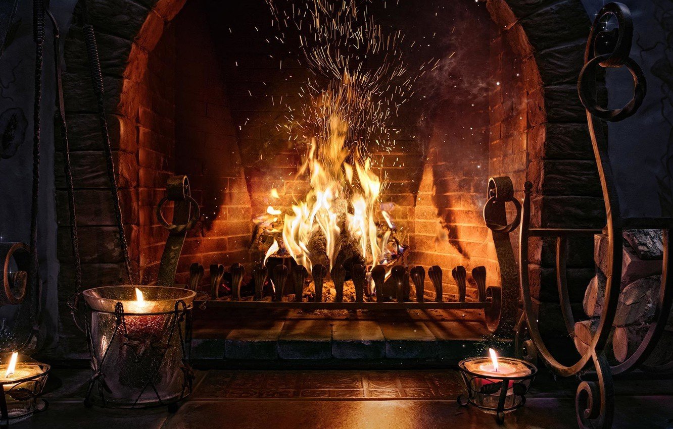 Новогоднее фото на рабочий стол на телефон камин елка Кружка