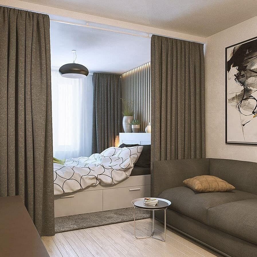 Зонирование спальня гостиная 20 кв.м
