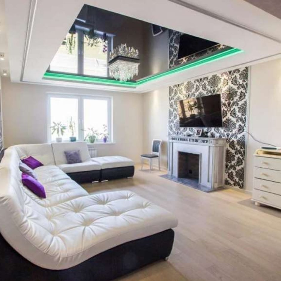 Натяжной потолок в гостиной
