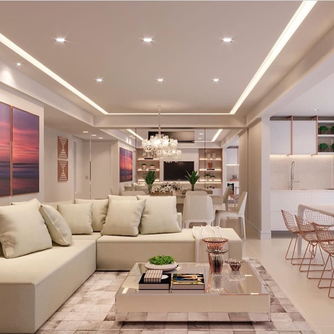 Потолок световые линии в гостиной