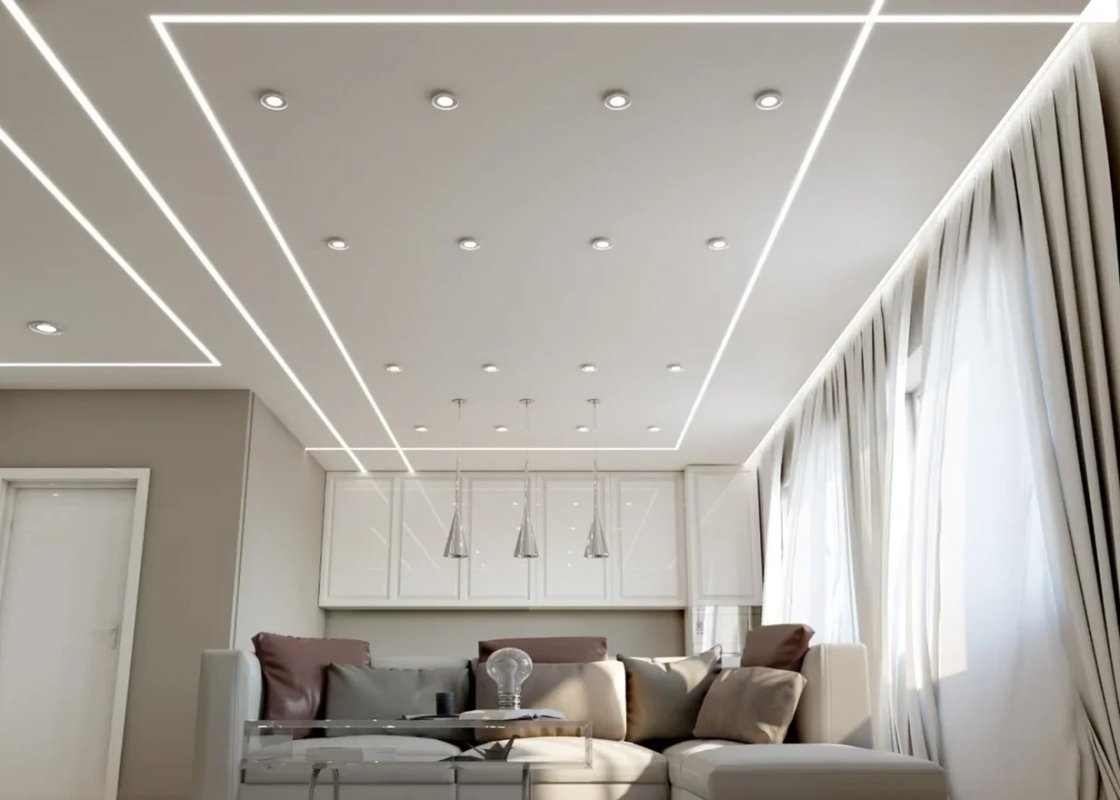 Потолок с линейными светильниками