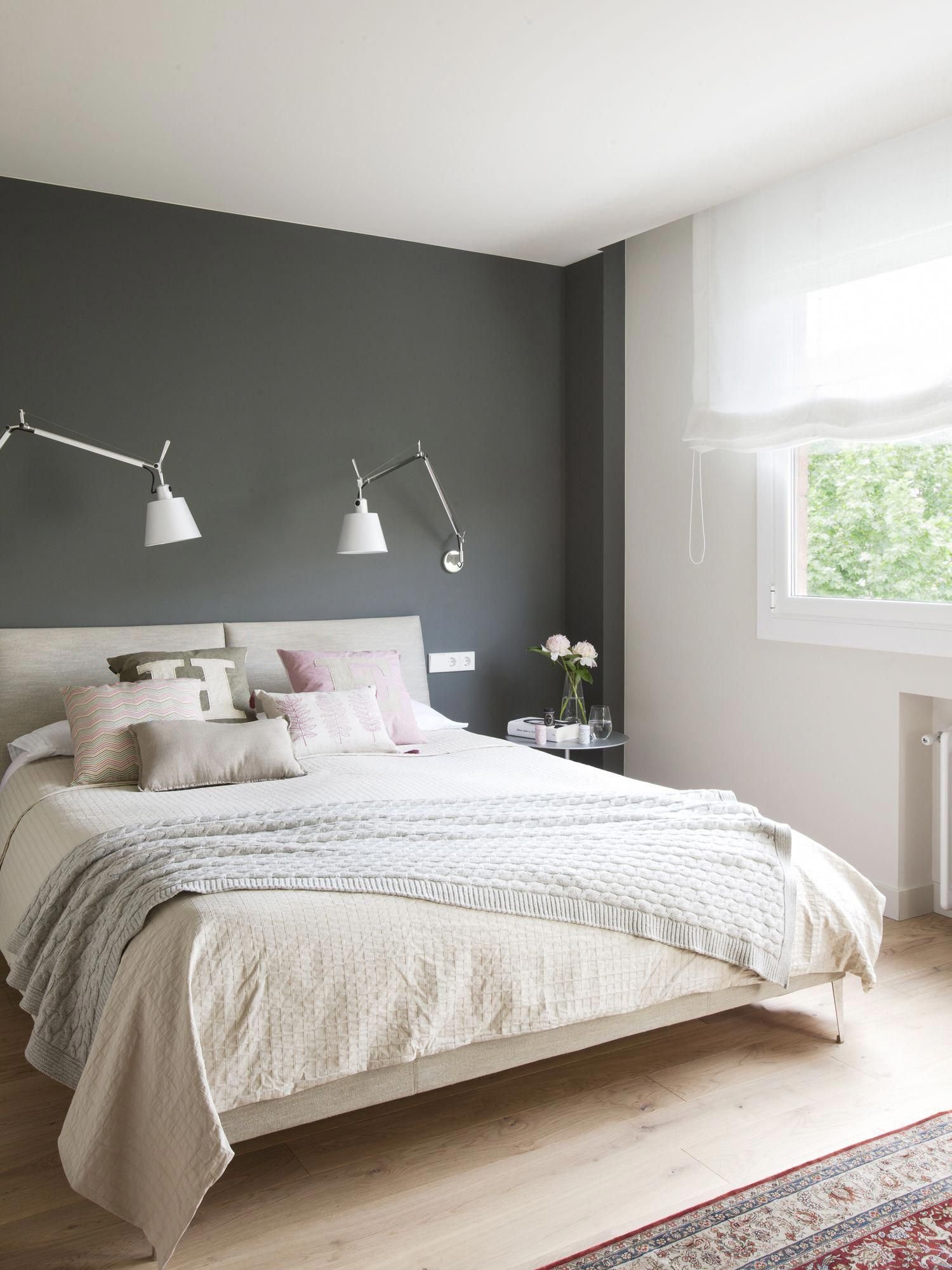 Серые стены в интерьере спальни