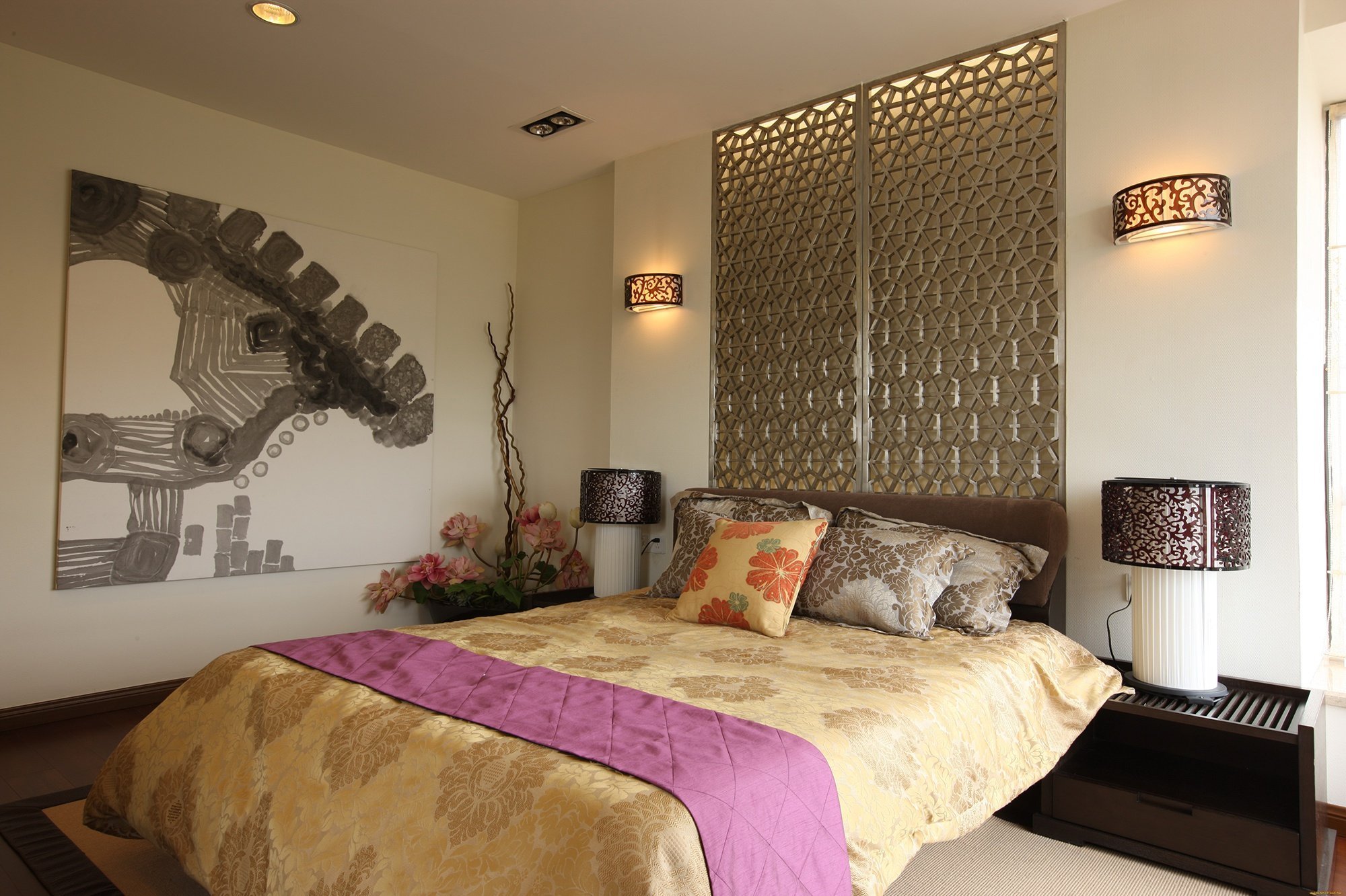 Панно в интерьере спальни