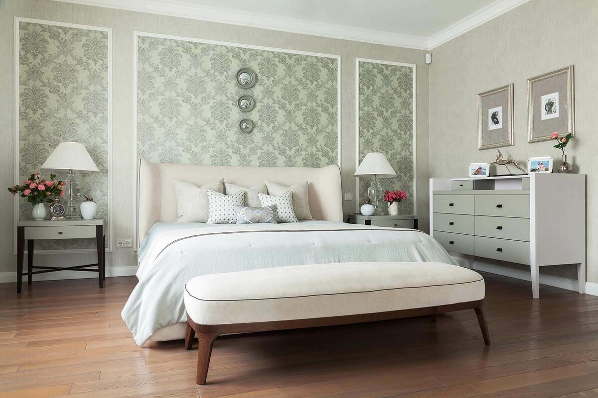 Спальня с молдингами на стенах