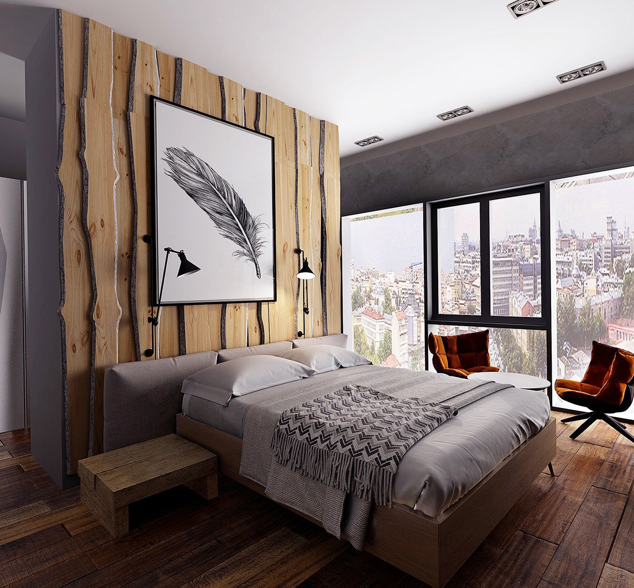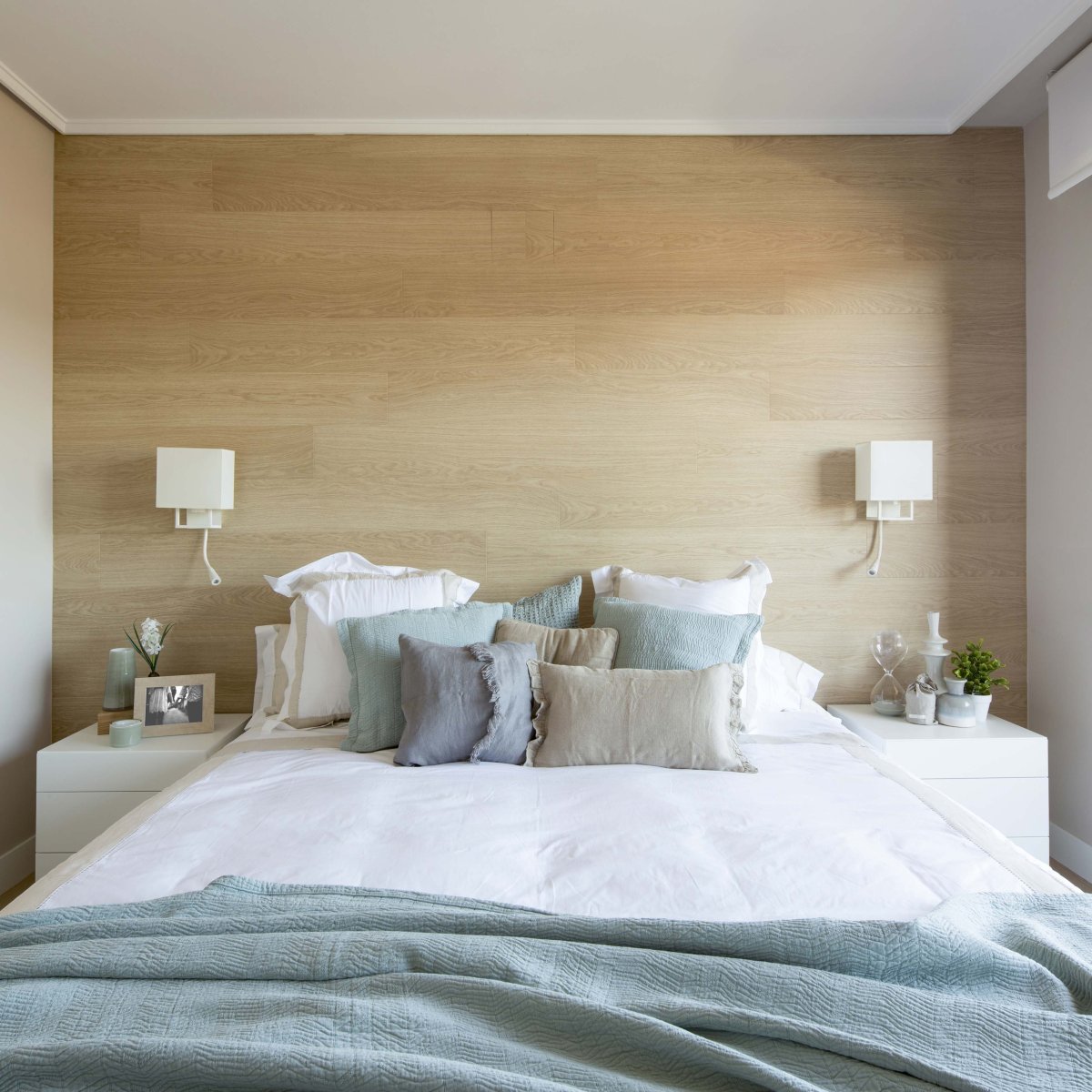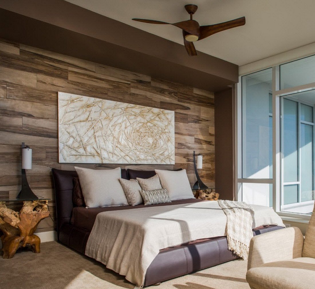 Деревянные панели в интерьере спальни