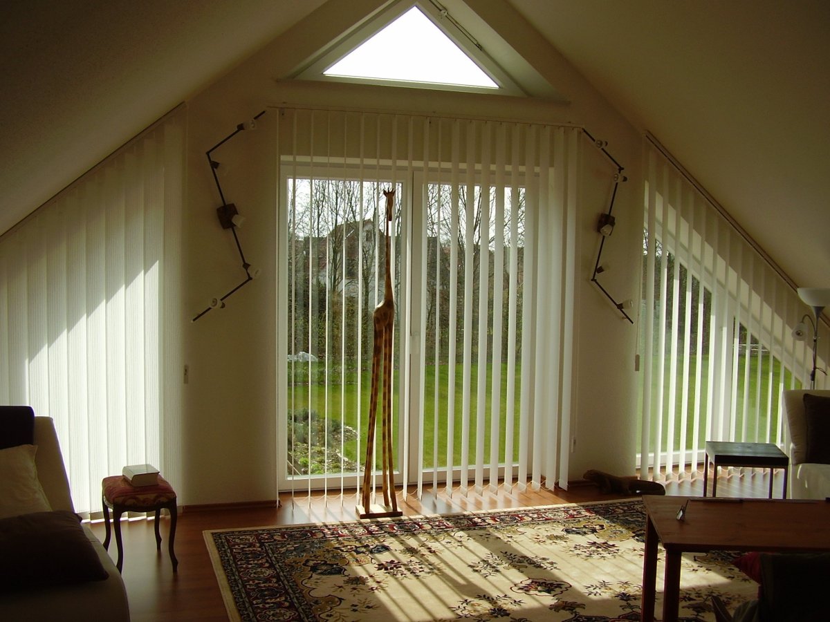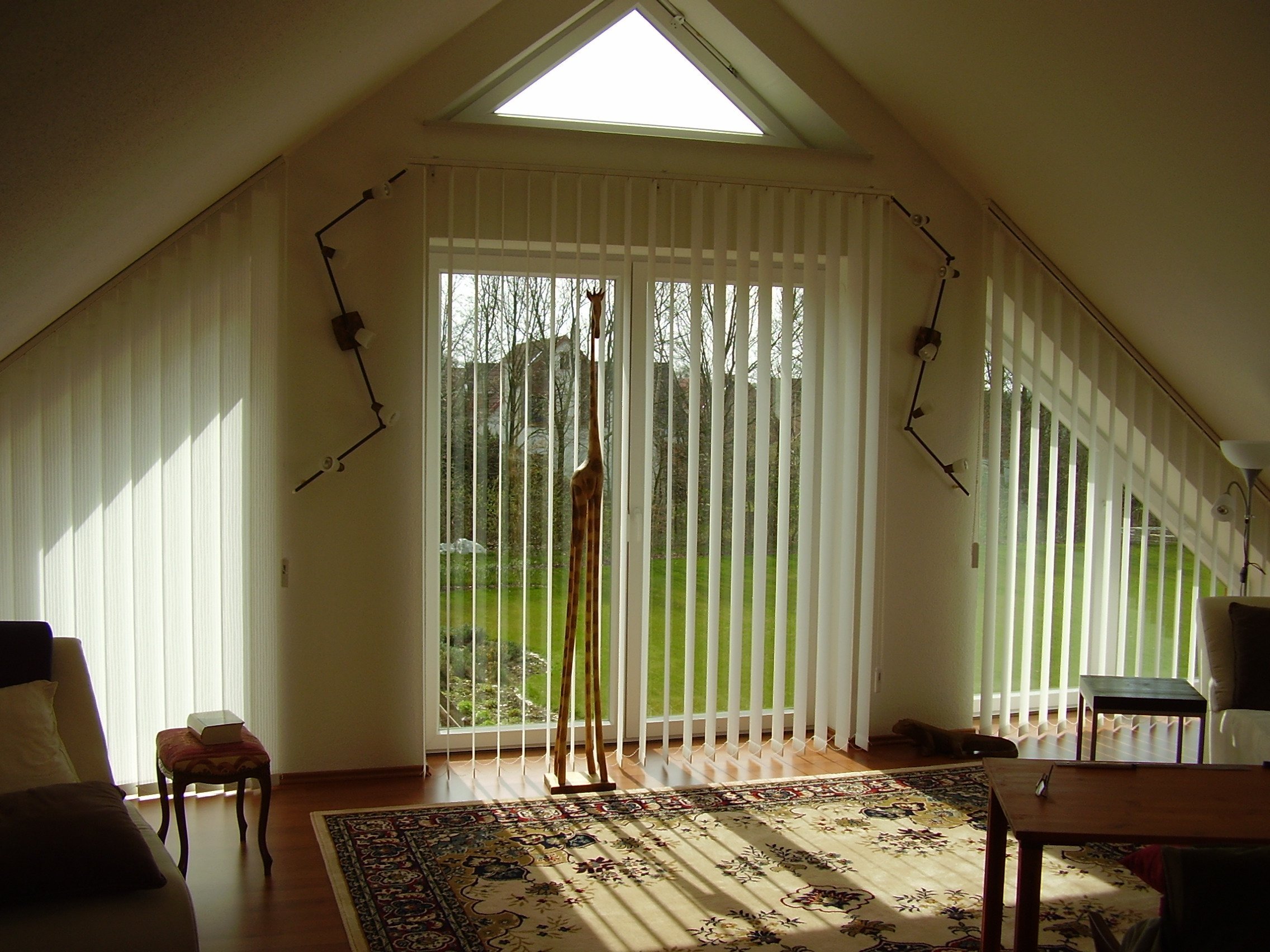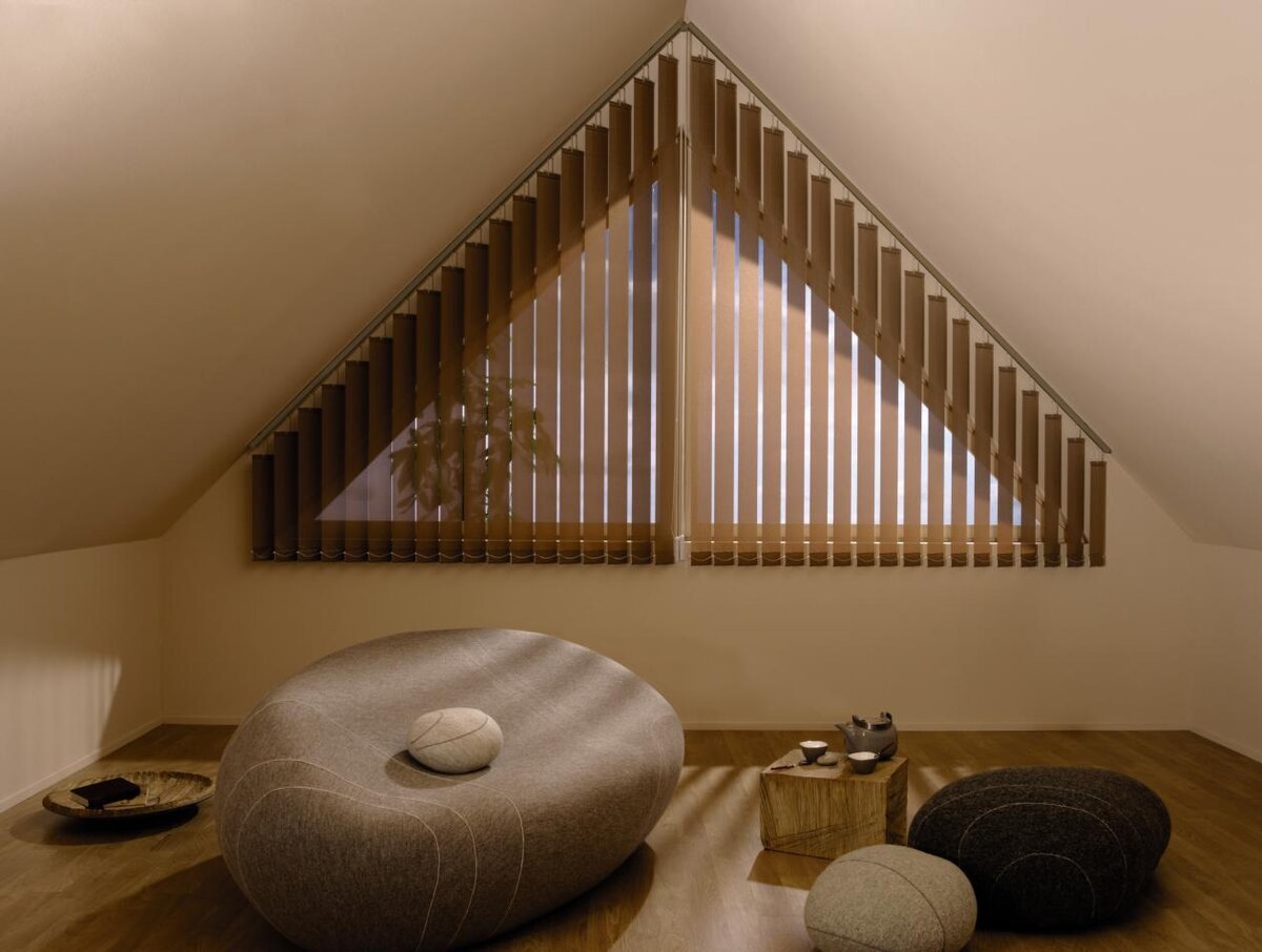 Вертикальные жалюзи на мансардные окна со скошенным потолком