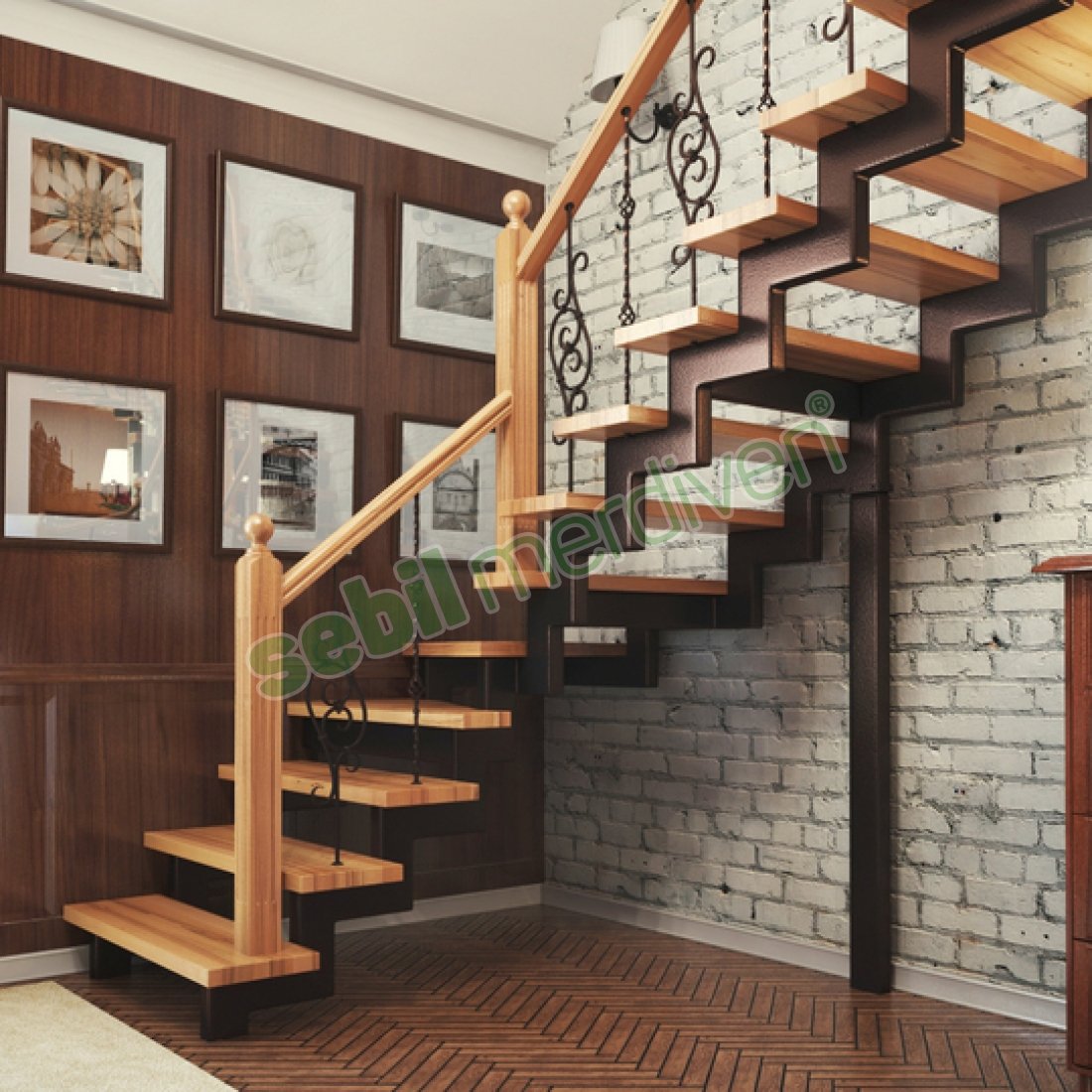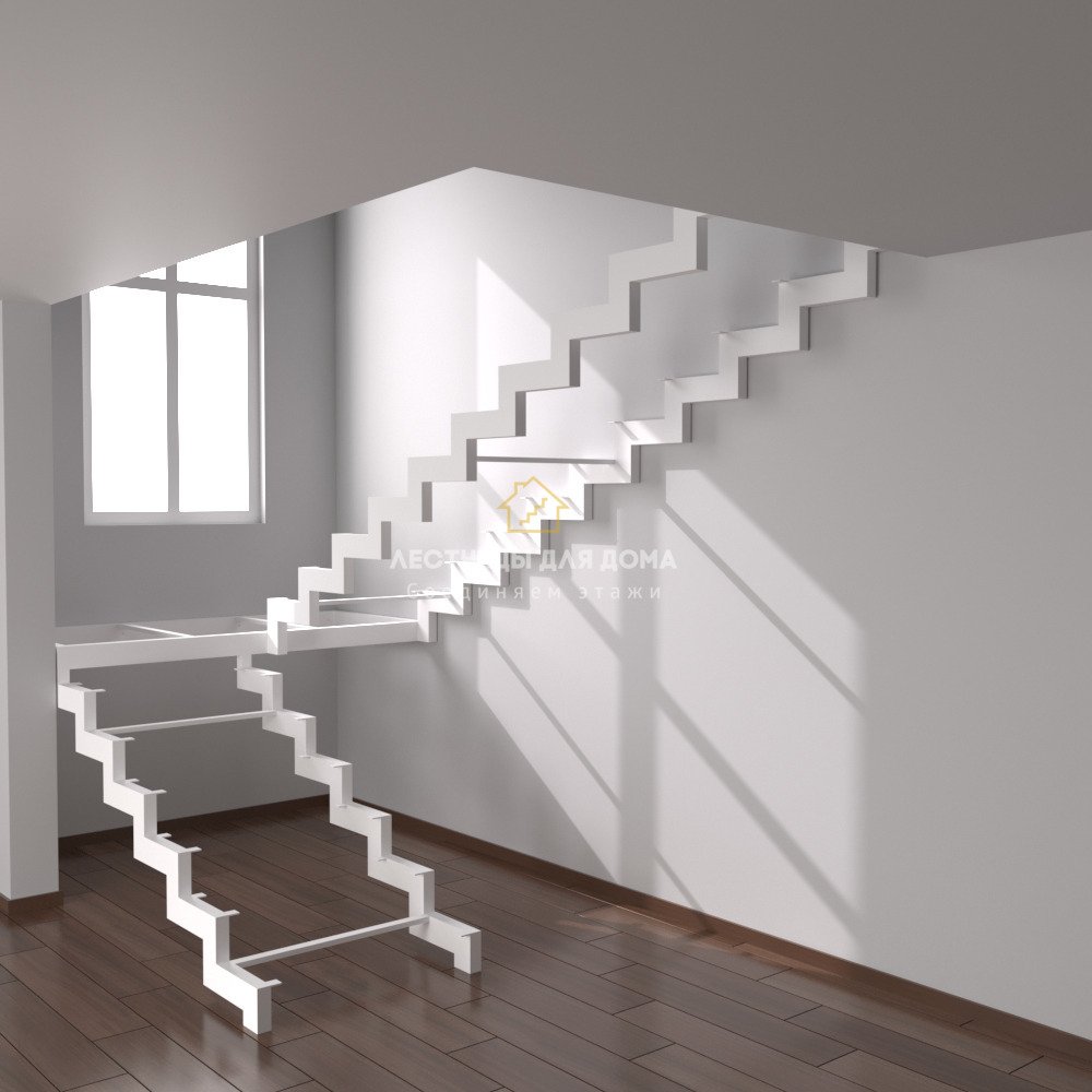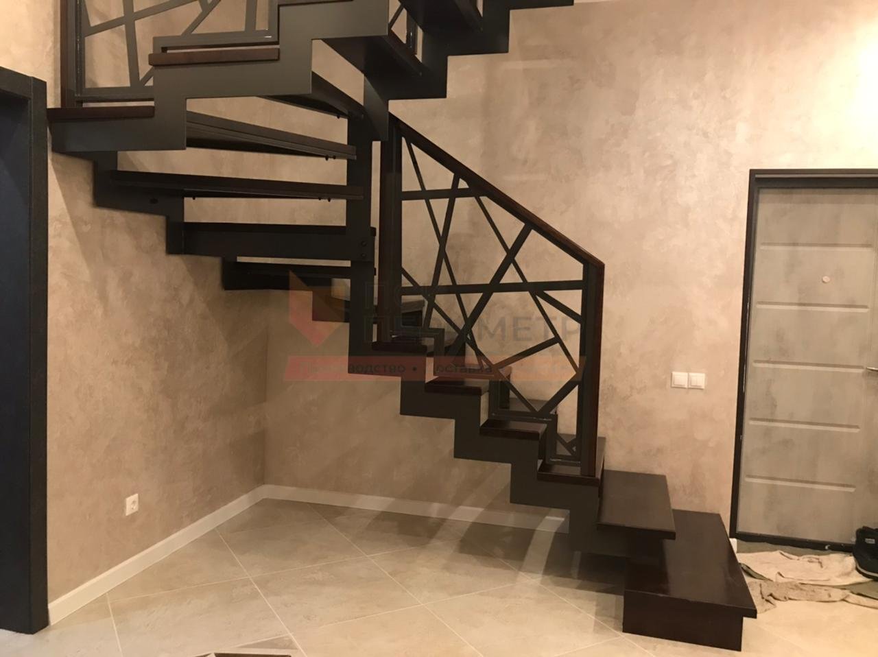 Лестница металлокаркас поворотная 180 с забежными ступенями