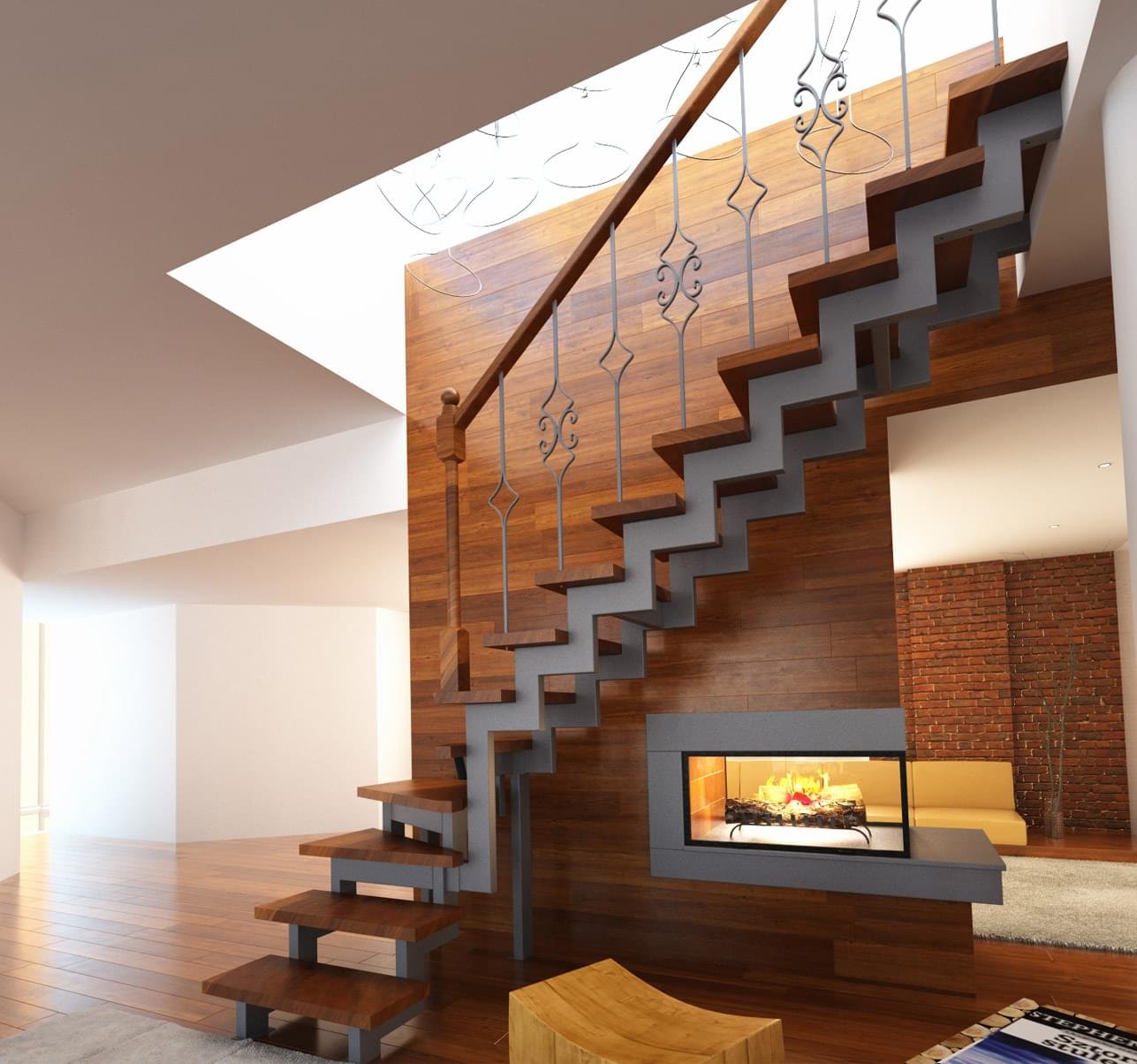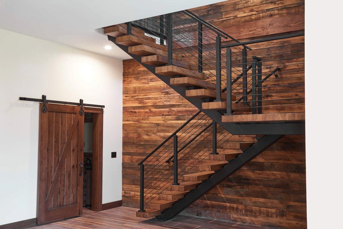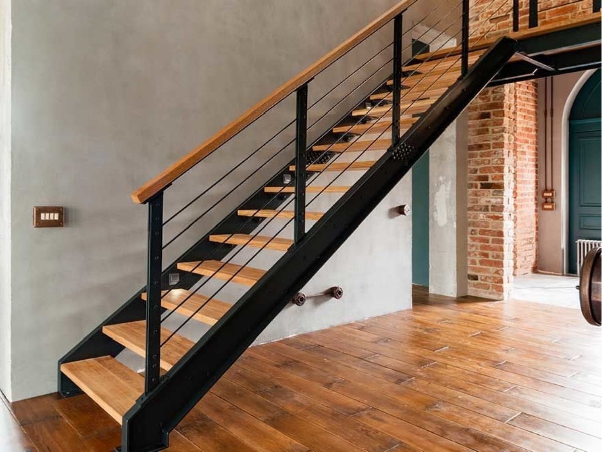 Лестница металлокаркас поворотная 180 с забежными ступенями