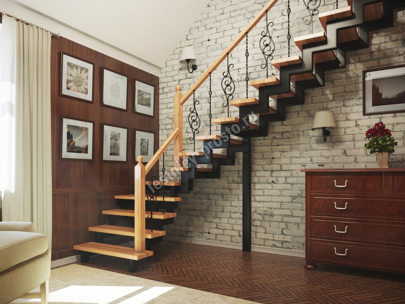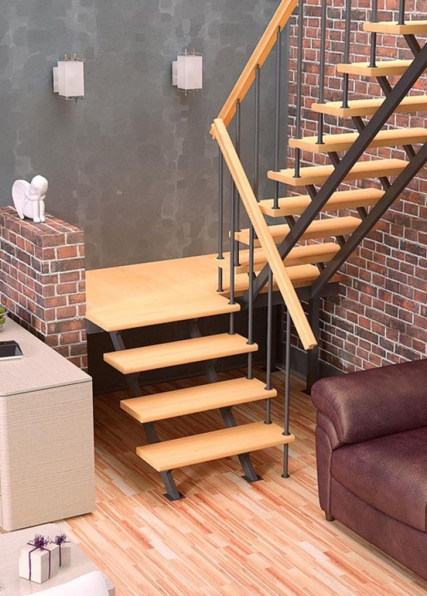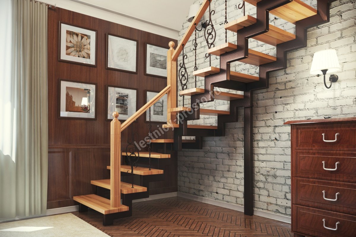 Комбинированная межэтажная лестница лес-06 (поворот 180°)