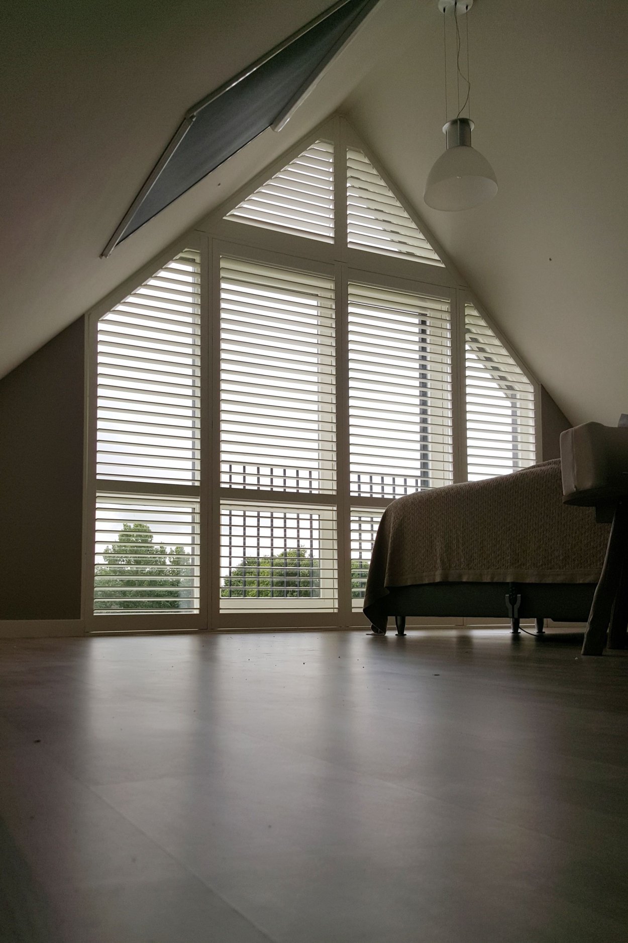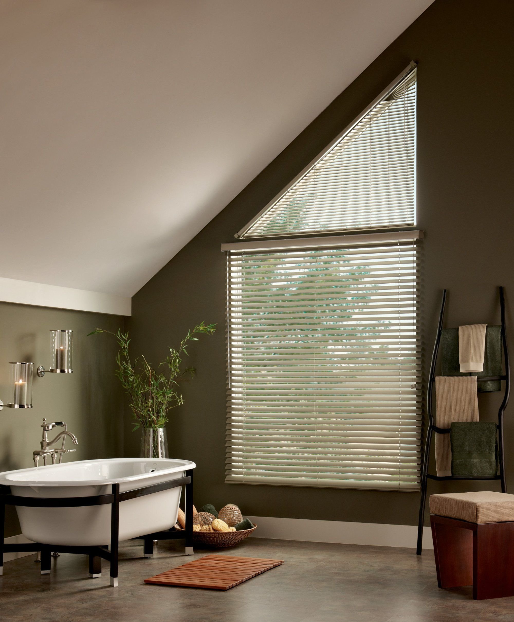 Горизонтальные жалюзи на треугольные окна