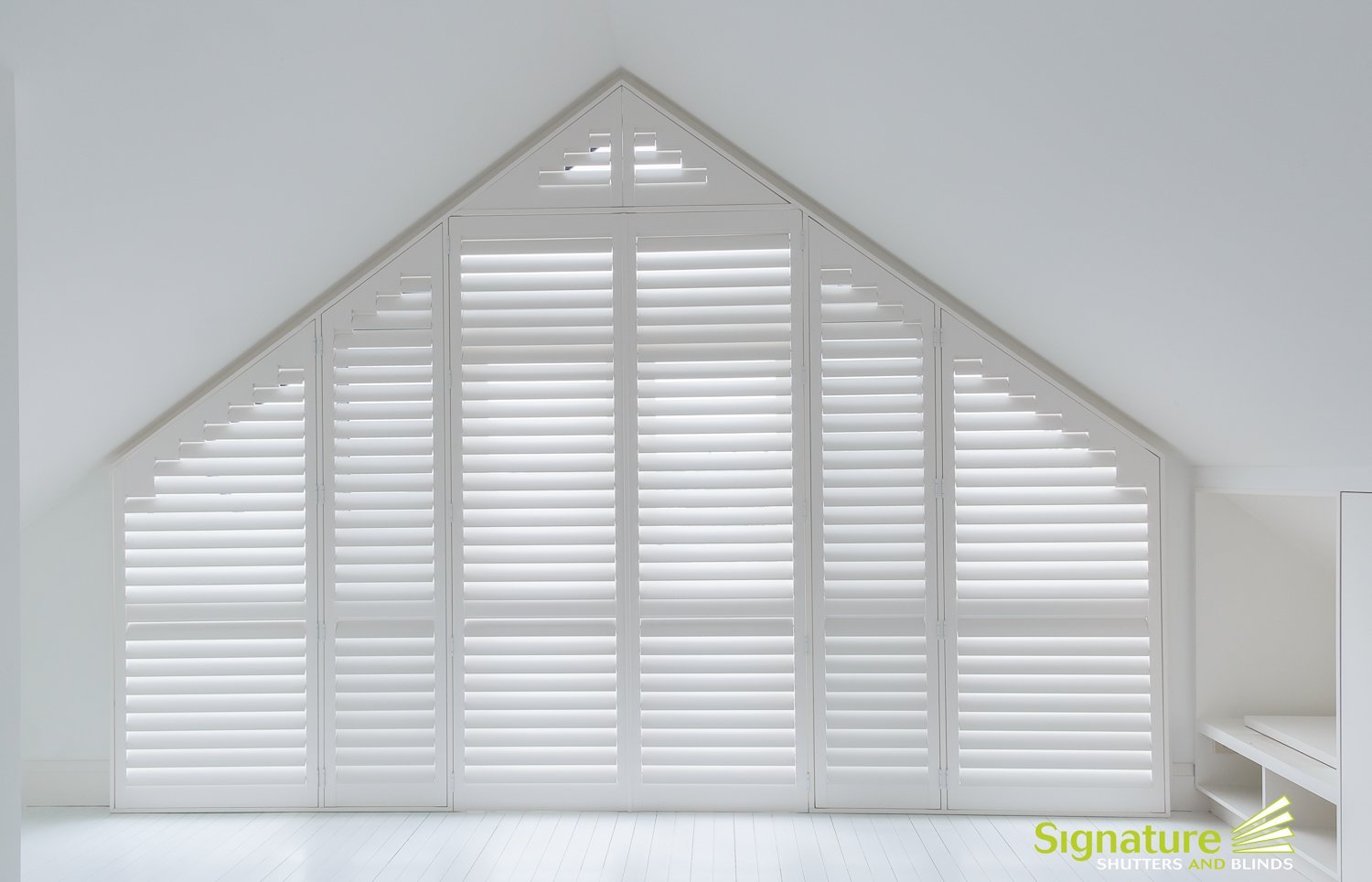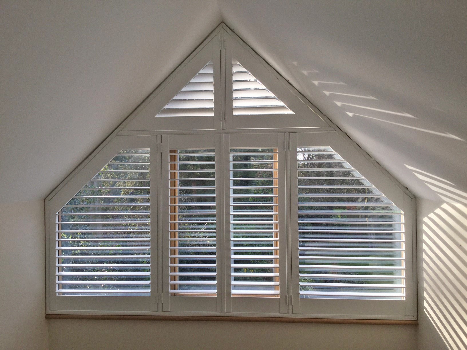 Деревянные жалюзи на треугольные окна