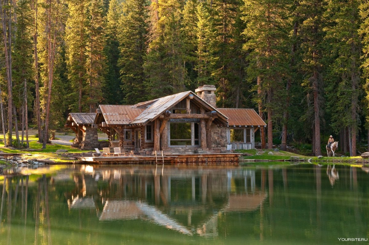 Лес горы штат Монтана домик у озера