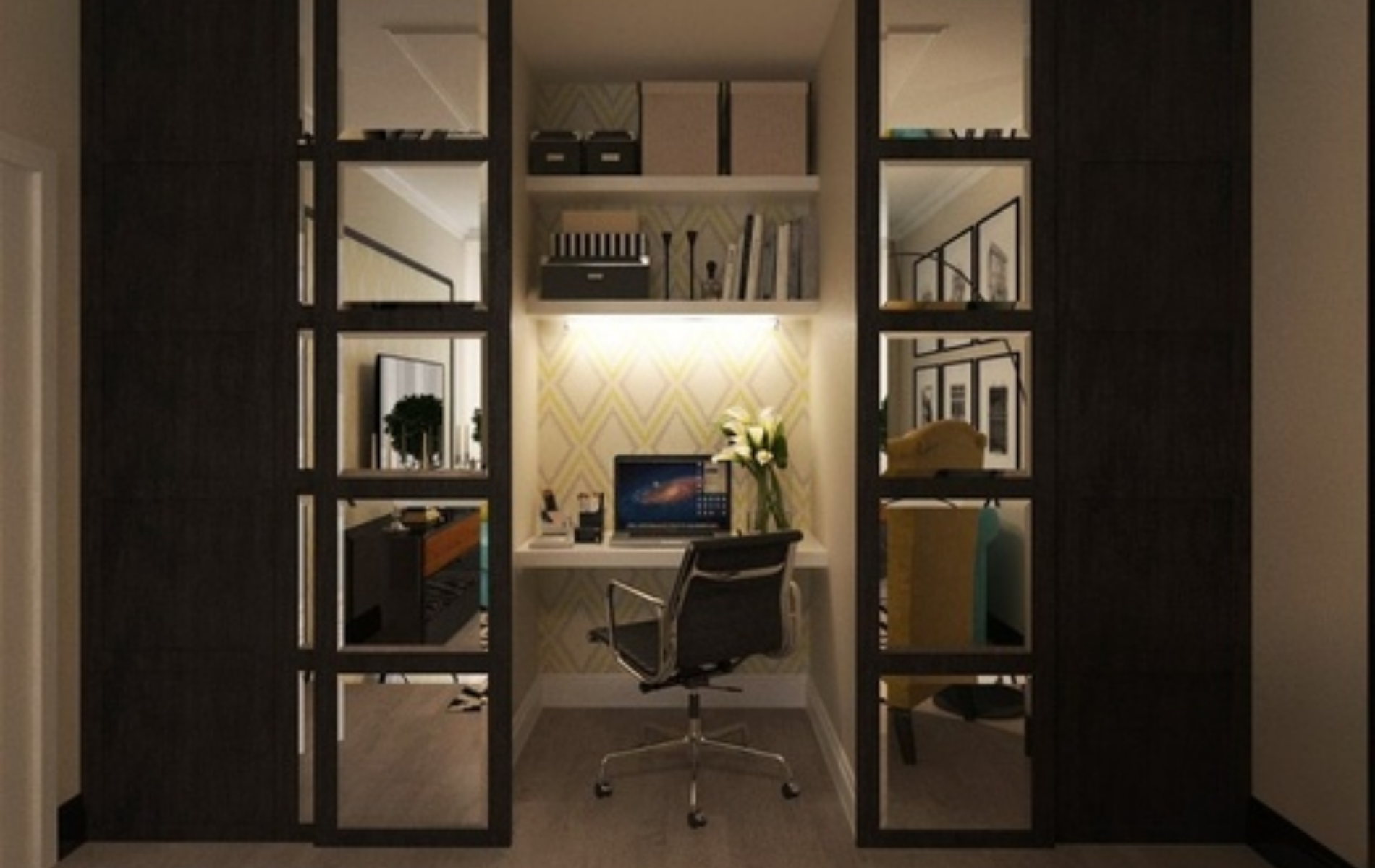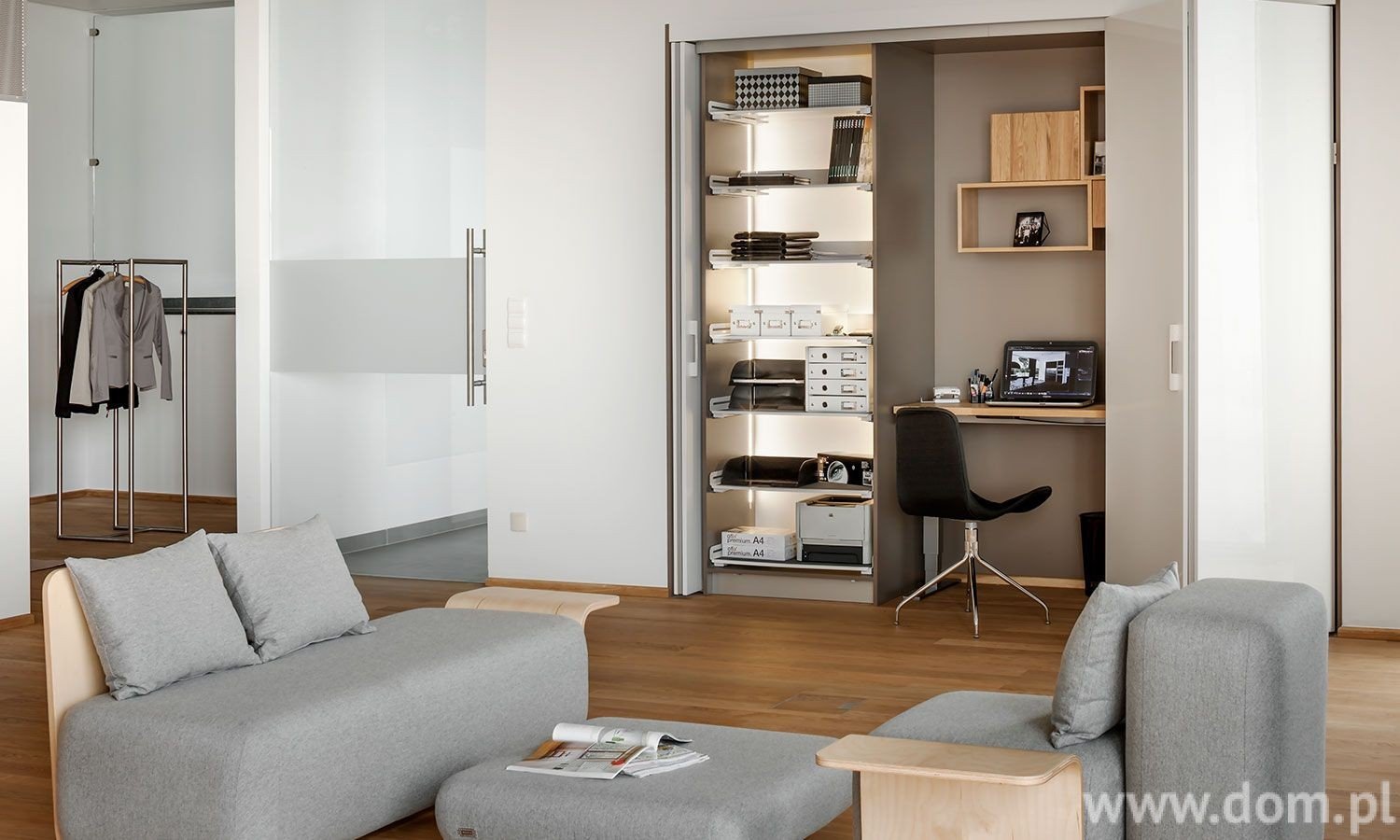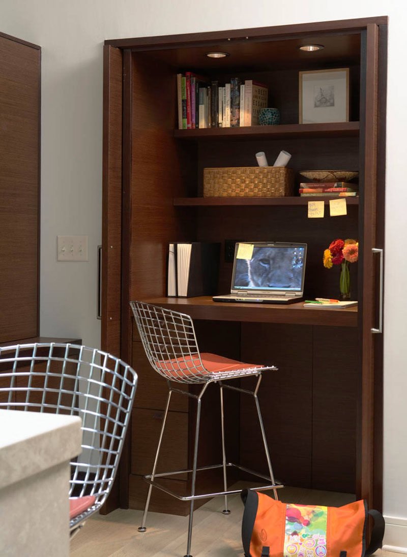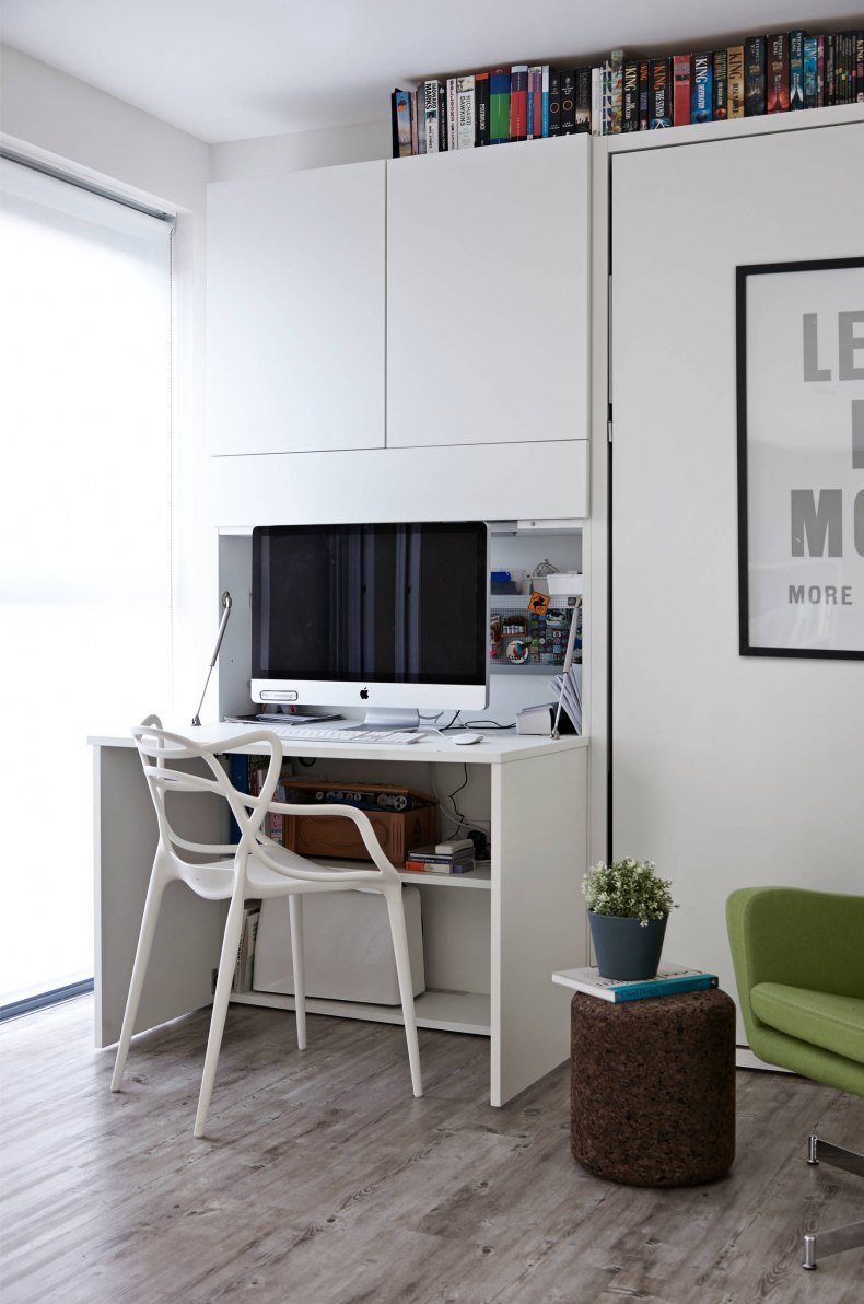 Спрятанное рабочее место в гостиной
