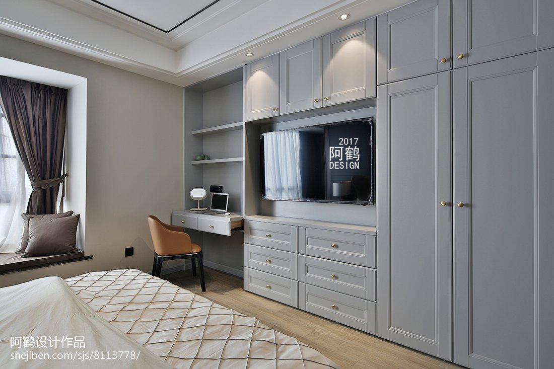 Спальная комната с телевизором и шкафом