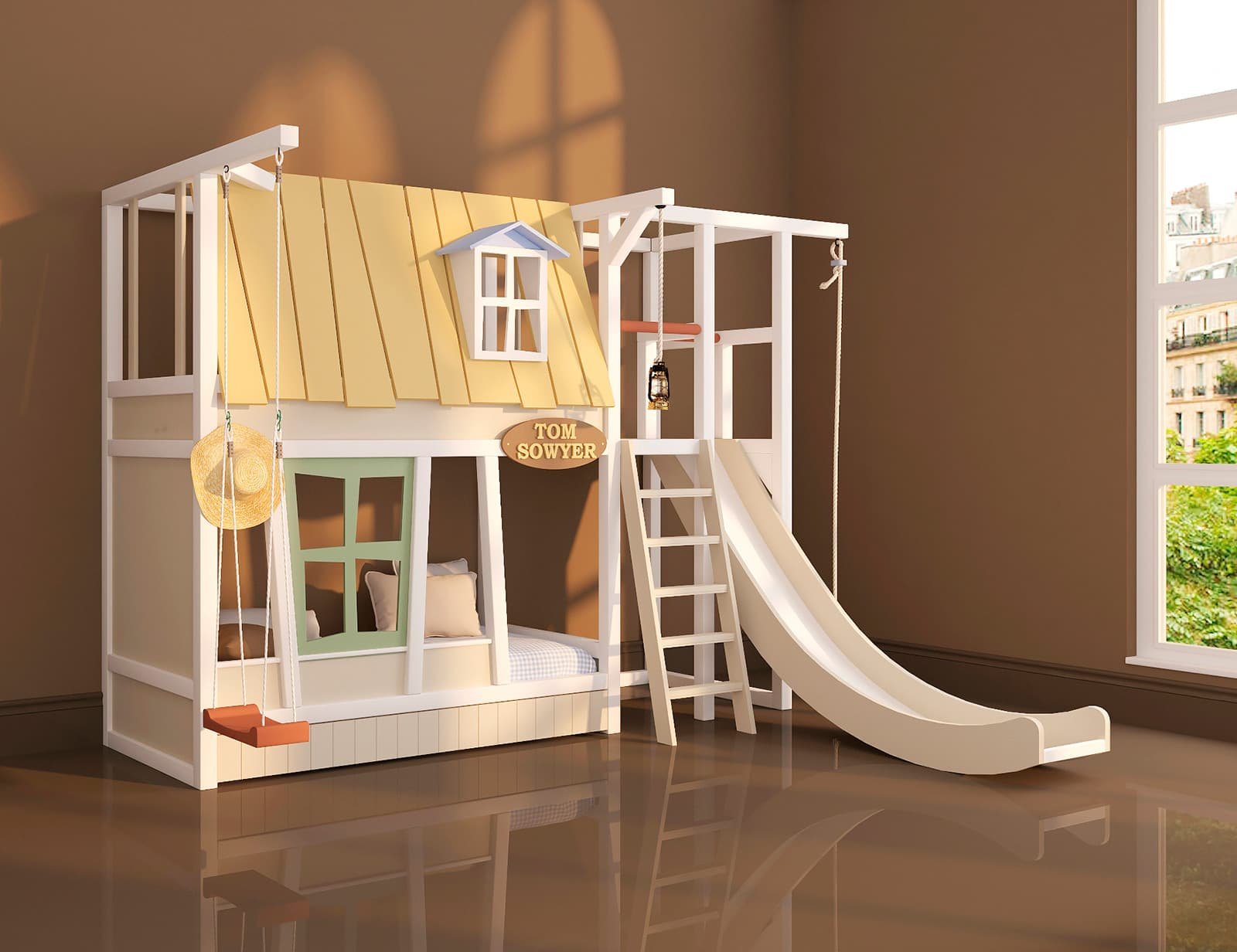Детская комната с домиком и горкой